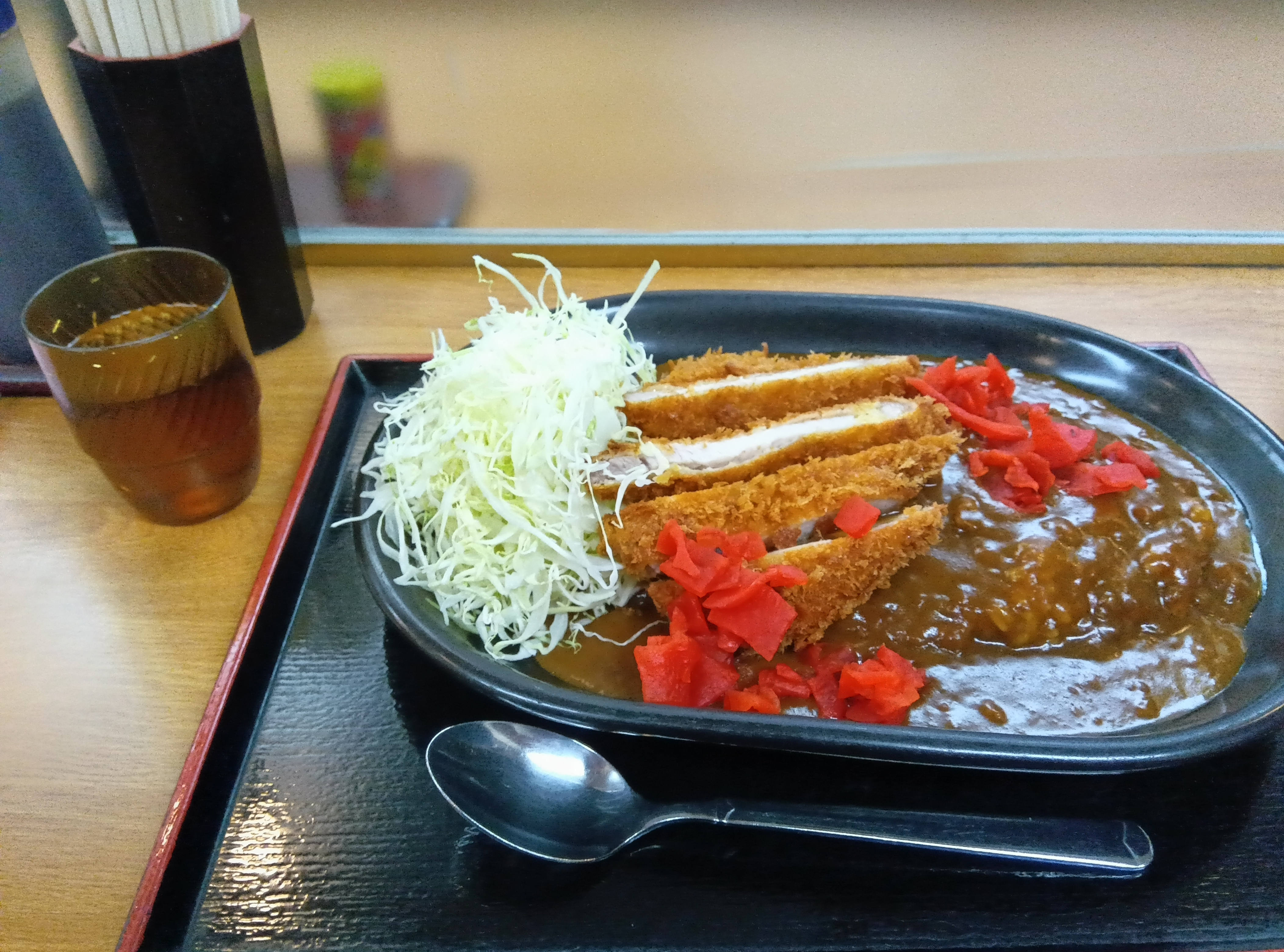 また、お水や、温かいお茶がありましたが、セルフサービス、商品の受け取り&食器の返却もセルフサービスでした。