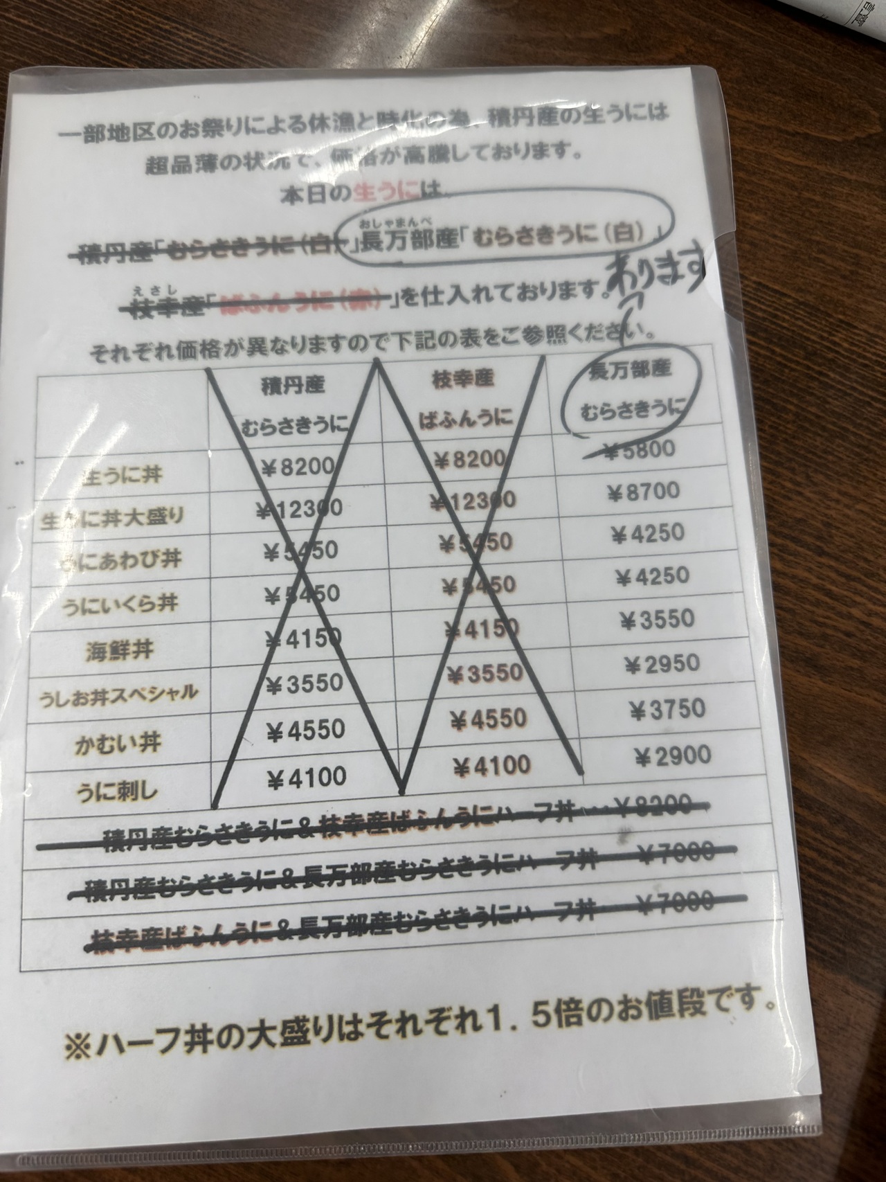 昭和のころは危険な海岸の道を延々と走り、ようやくたどり着く神威岬への入口に立つ食堂だった。神威岬へは台地上まで道が通り、広い駐車場の設置されて観光客はほとんどそちらに回ったが、前の浜から水揚げされるウニを目当てに食事に訪れる観光客で夏場はにぎわっていた。近頃は観光客の増加をウニ目当ての観光客が爆発的に増加、一方肝心のウニは収量が激減して、地元産のウニを手ごろにいただくことはほとんど絶望的になってしまった。夏の休日は入店にすら、かなりの待ち時間が必要になってしまった。