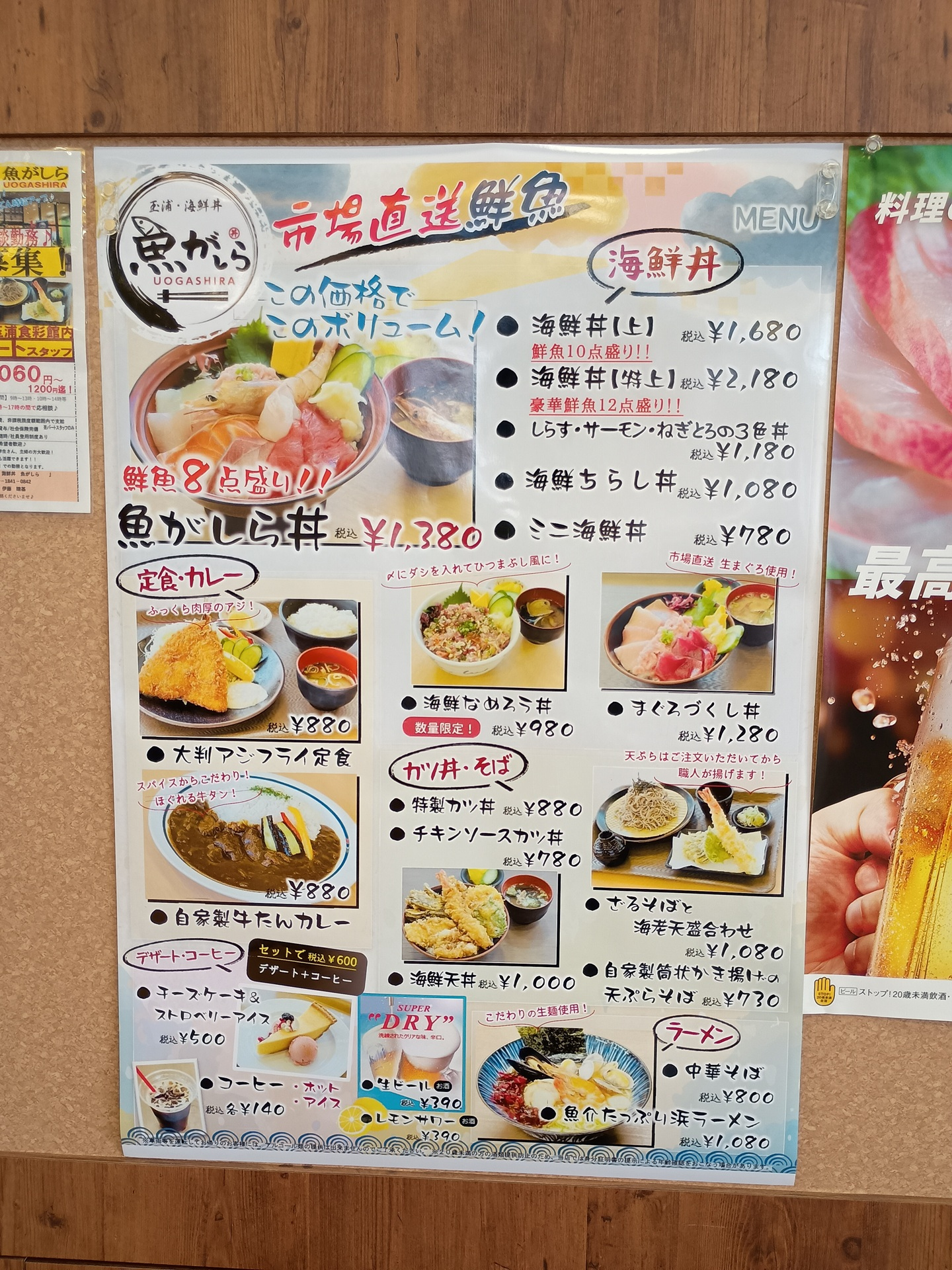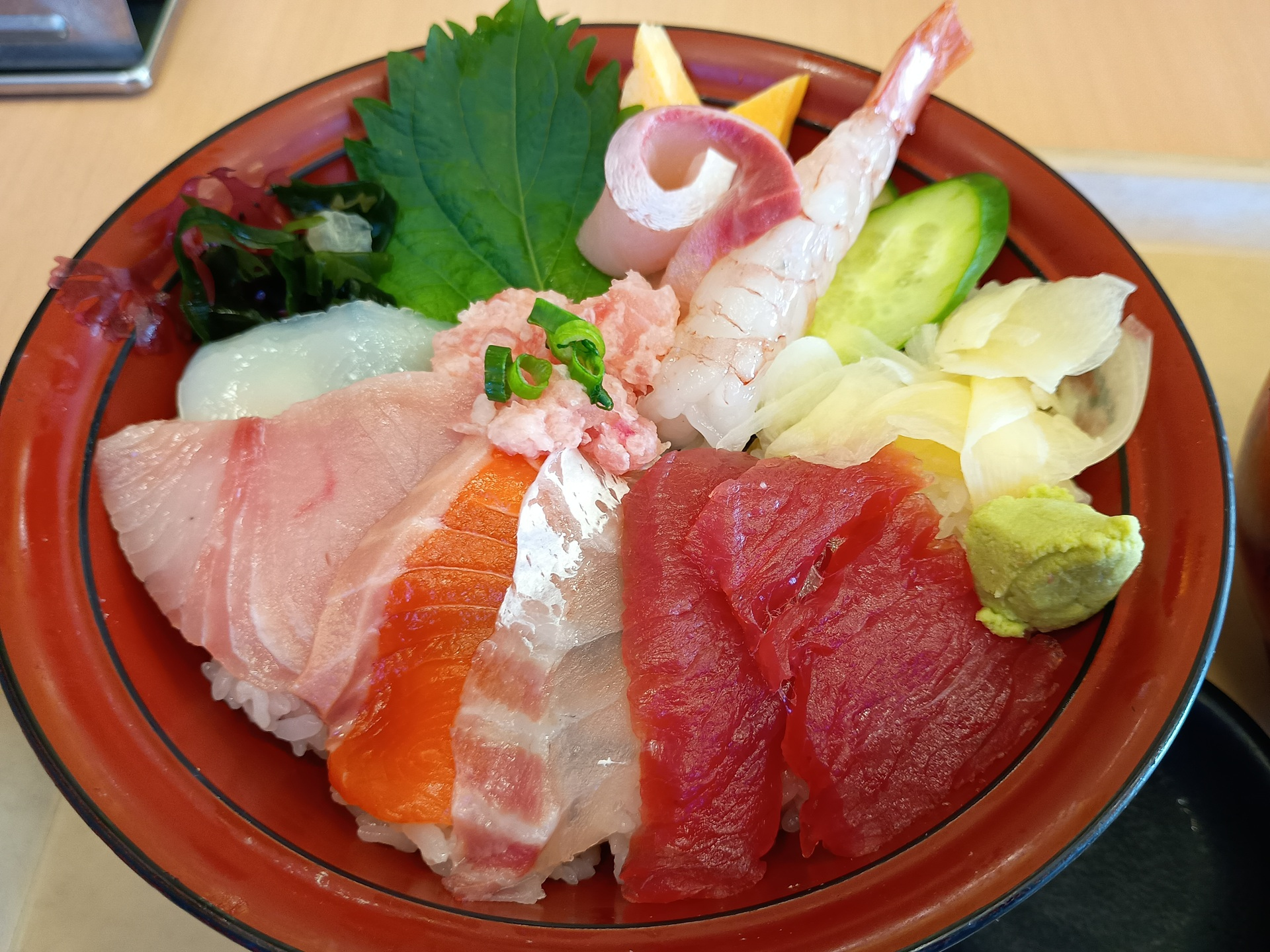 今回は海鮮丼のにしたが天丼やアジフライも美味しそう。注文している人も多かったので次はどちらかを注文してみたいな。