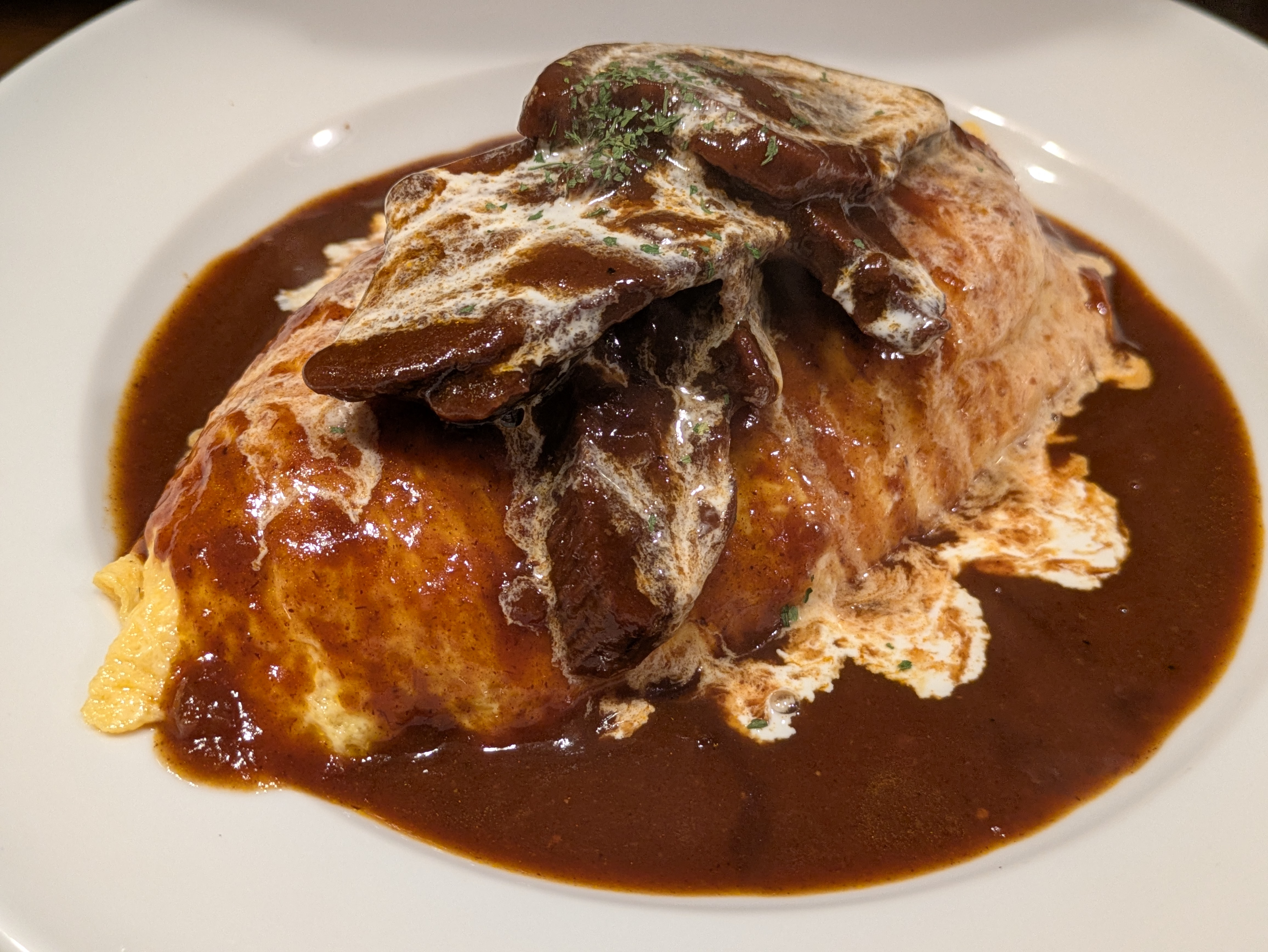 各客席も狭苦しく、ゆったりとくつろげる環境ではありませんが、提供されるオムライスは、味付け・食感・盛り付け、いずれも絶品です。ライスを包むオムレツは、トロトロになり過ぎず固くなり過ぎず絶妙な柔らかさで、しっかりとライスと調和のとれた味付けになっています。オムライスにトッピングされた各種ソースや具材も決して濃い味付けにならず、時間が経過してもコクやまろやかさを失っておらず、最後まで美味しくいただけると思います。値段は高めに設定されているものの、いずれのソース・具材もとても美味しそうに見えるため、コンプリート目的で何度も足繁く訪れる人も少なくありません。