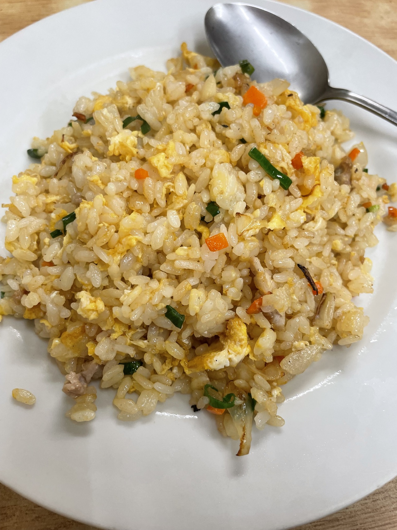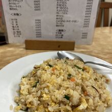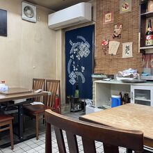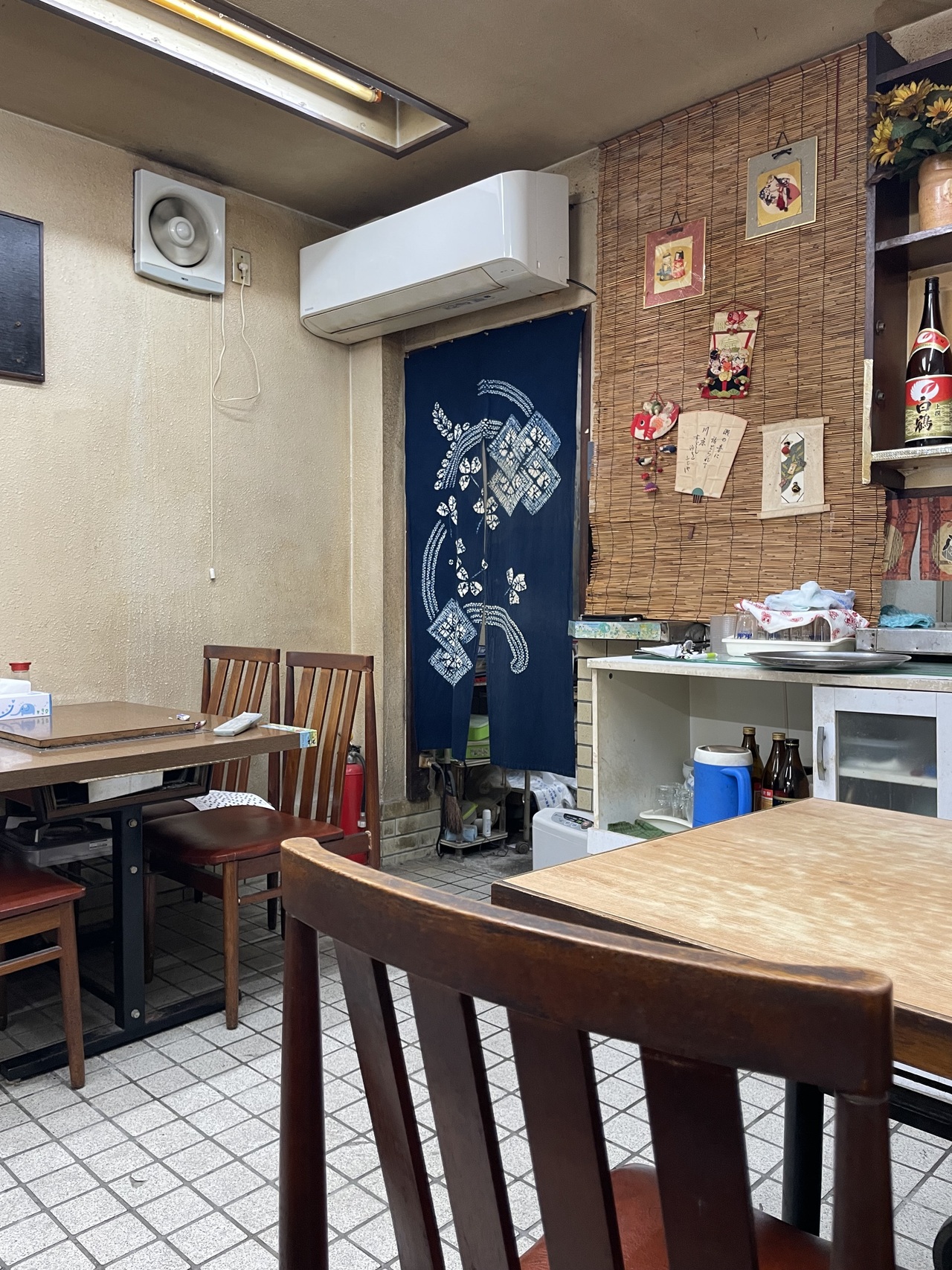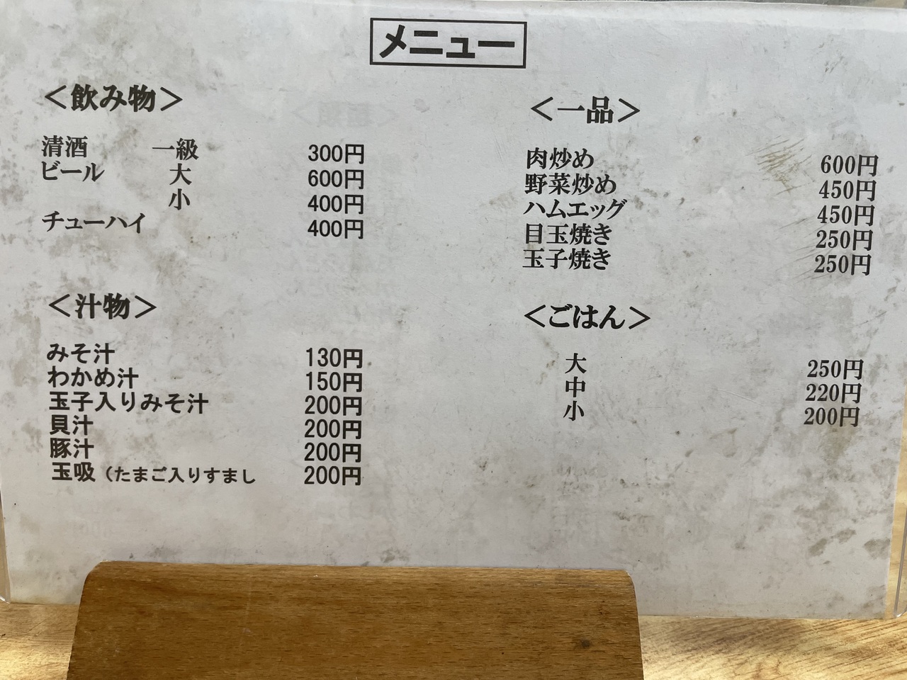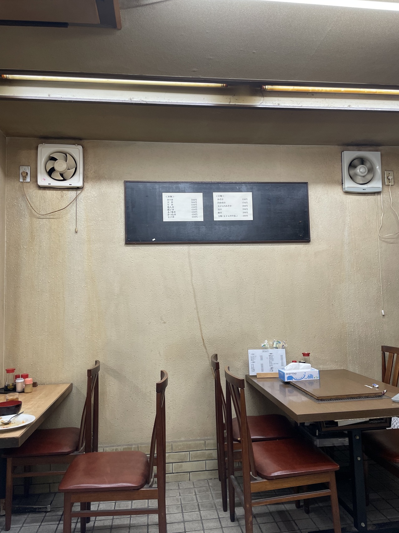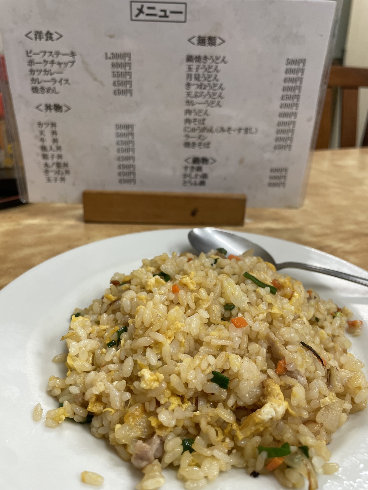 テーブル席が5つある店内でガラス張りの冷蔵庫には一品料理が置いてありました。朝に行きましたがモーニングメニュー等はないようで、焼きめしを食べました。焼き加減が良く家庭的な味でした。どの料理も格安で古びた佇まいの店です。