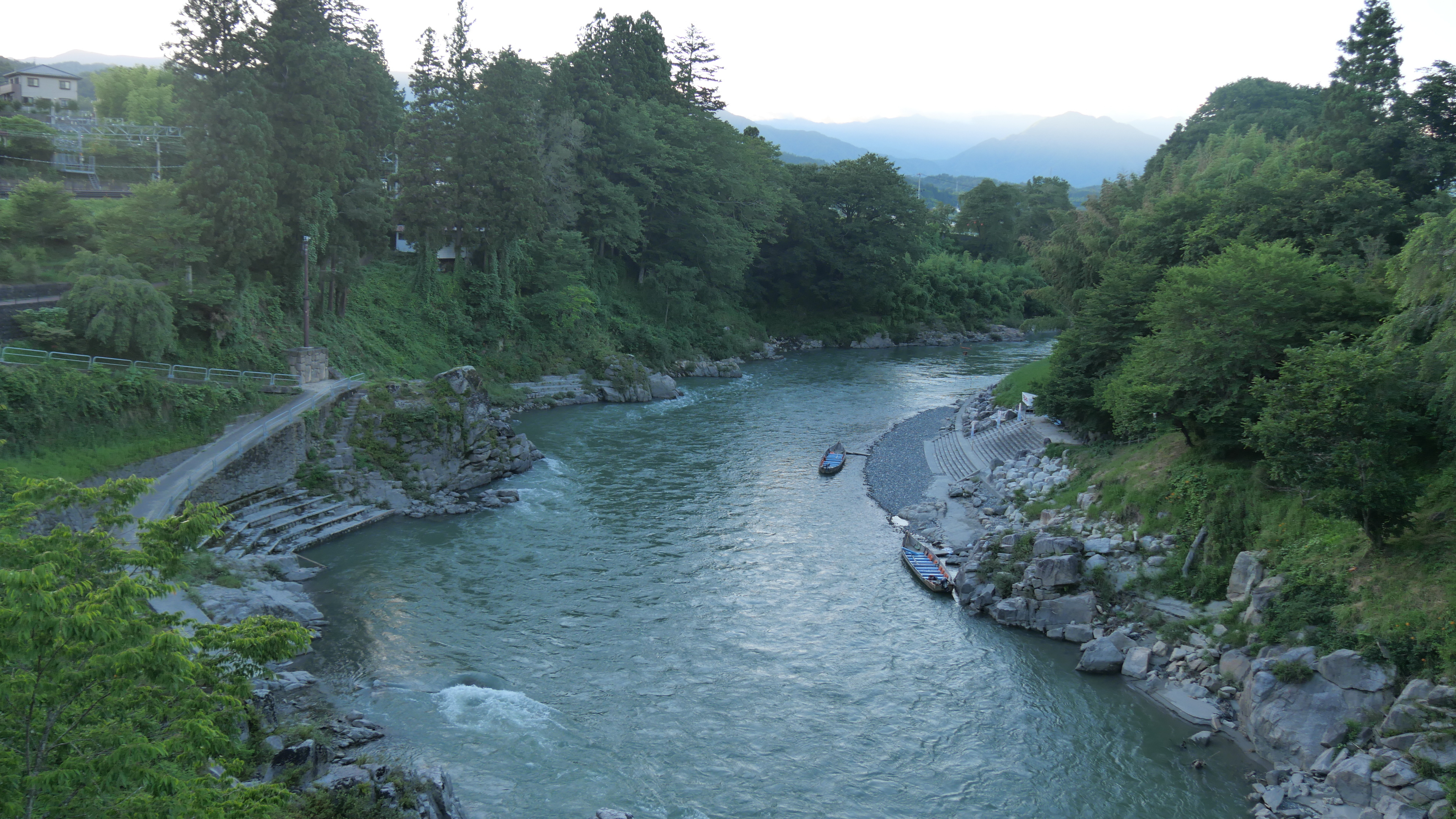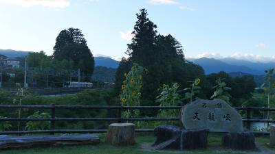 駅のすぐ前の広い広場のような公園からは、天竜川川下り船の発着場や天竜川が望めます。