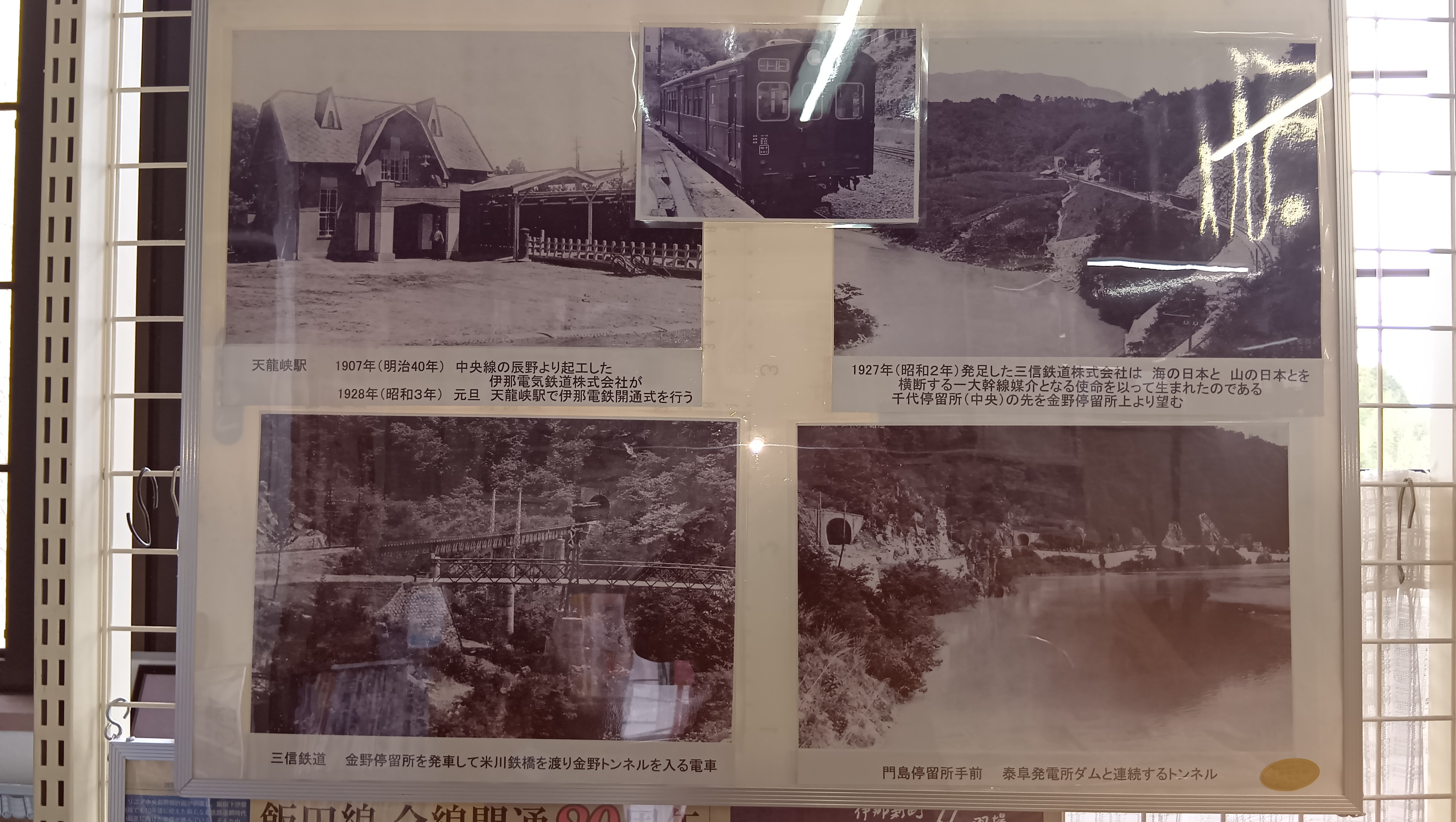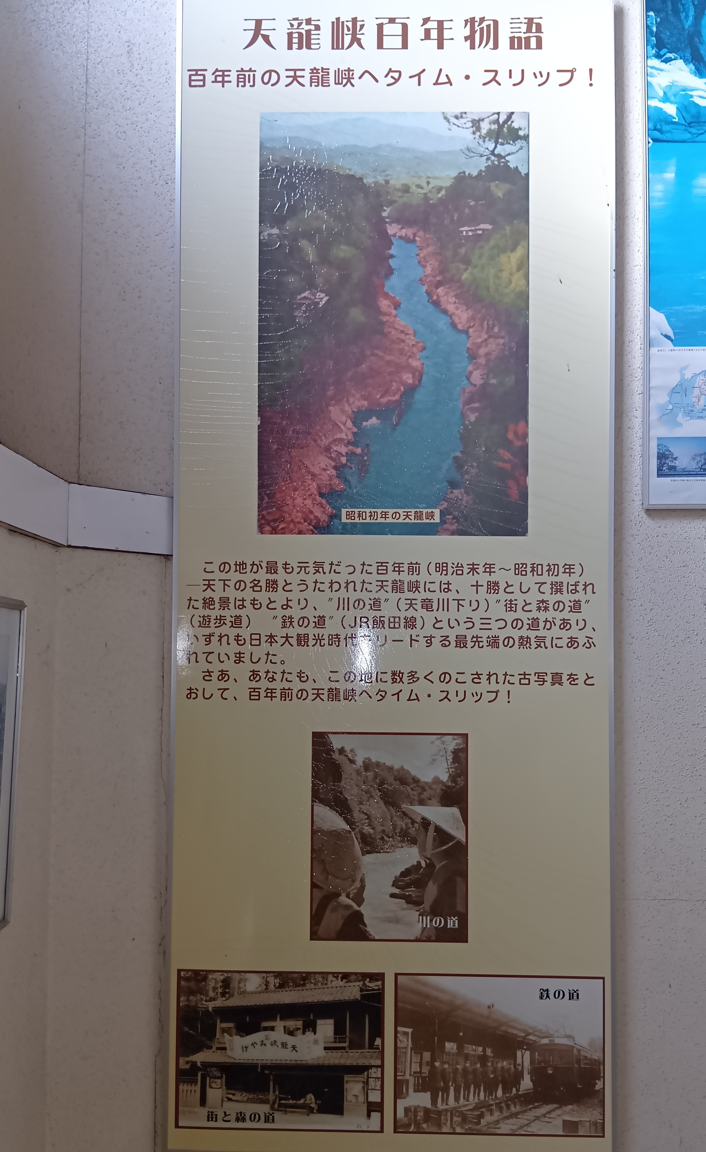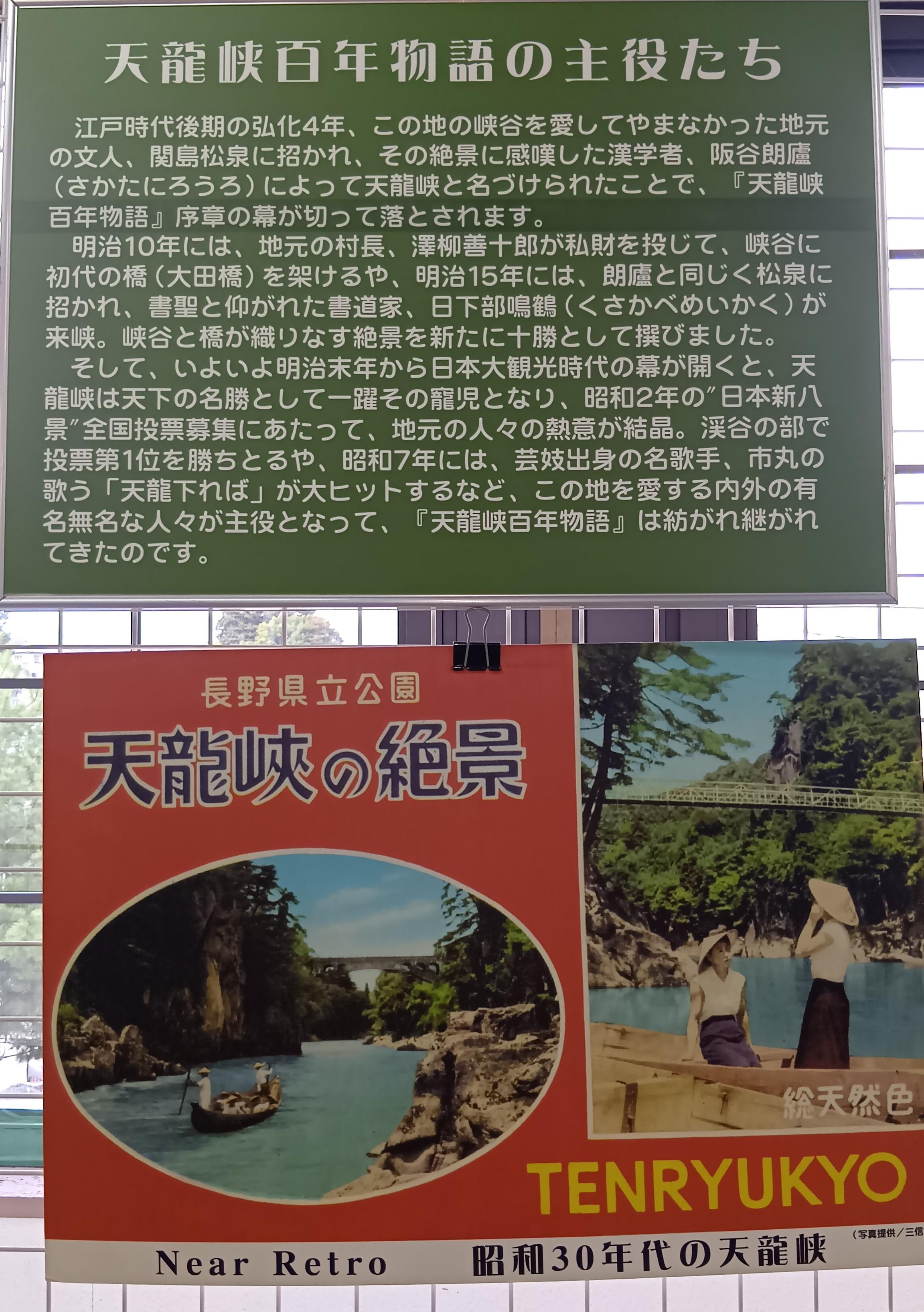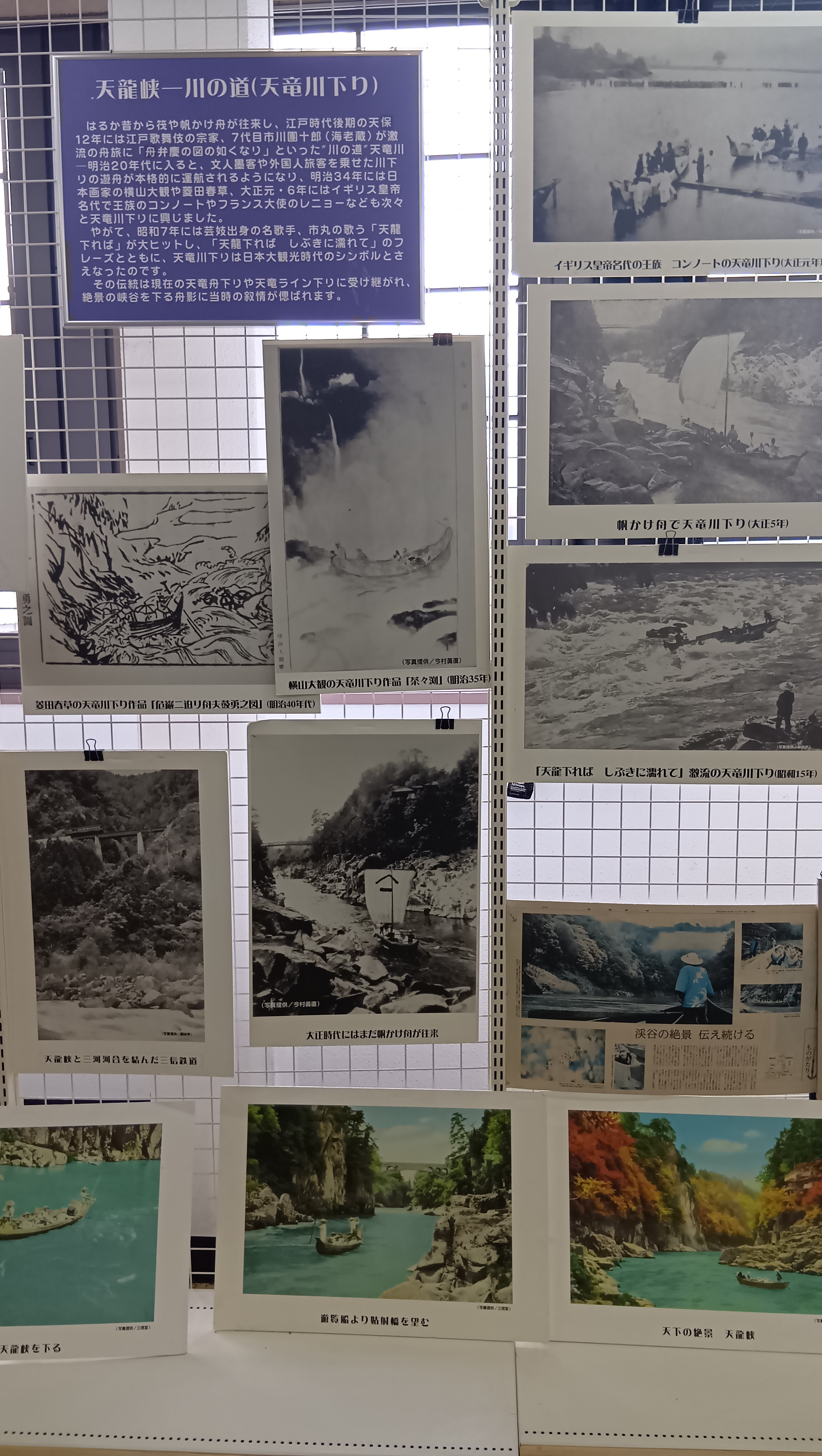 観光案内所と一体となっており、2階は昔の天竜峡の写真や、ポスター、はがきなどが展示されていました。