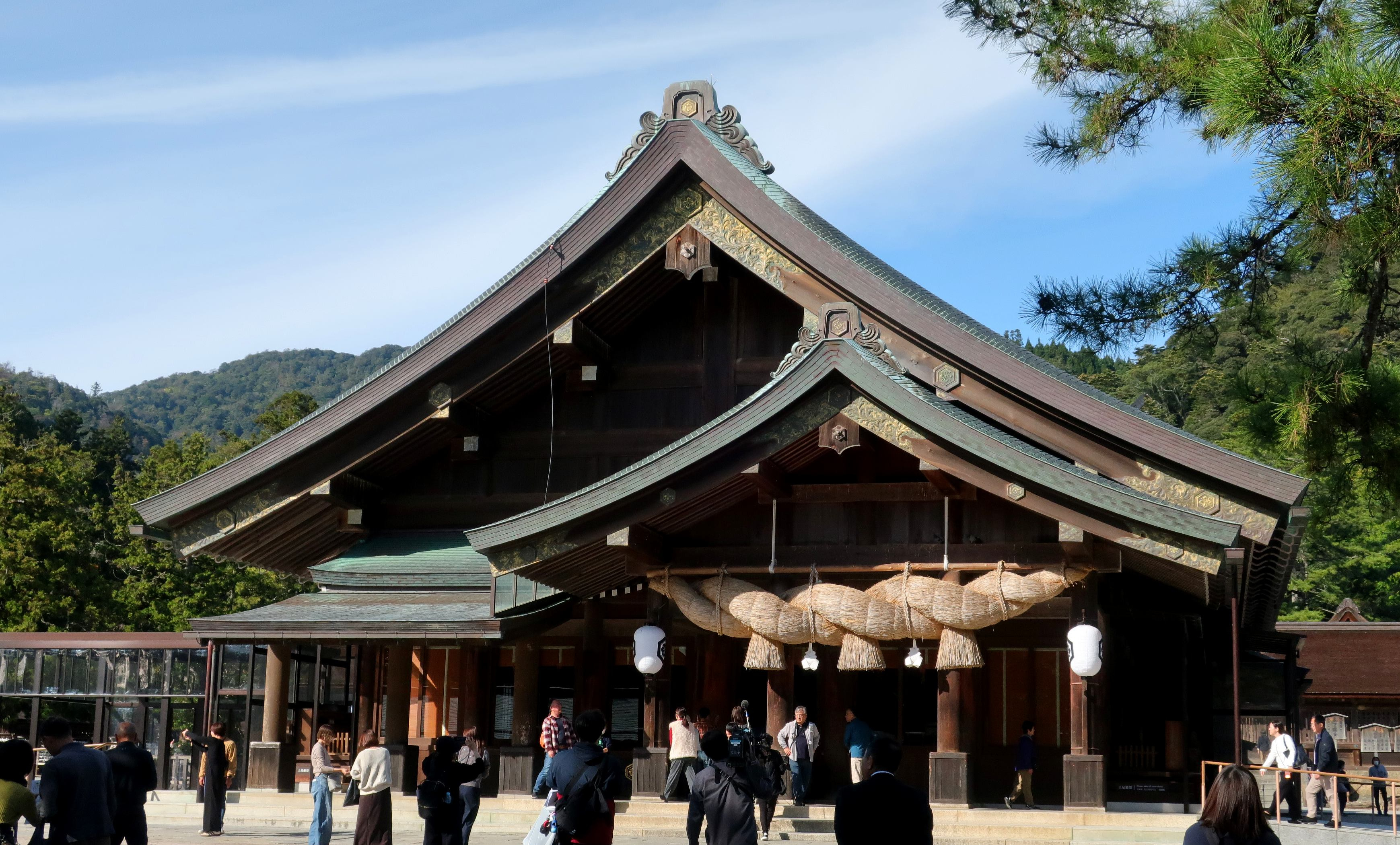 平成の遷宮以降、出雲大社の参拝は変わった、と思う。それまでは神楽殿横の駐車場に車を止めて、横から参拝していた。時間消費はわずかだった。それがどうだ。参道に多くの店舗が並び、伊勢神宮のおかげ横丁ほどではないが、多くの人々が出雲大社で時間消費するようになった。それに伴い、稲佐の浜で砂を採取して素鳶社で大社の砂と交換する慣習や、参道のそこここで実施する大社参りの作法など参拝の一つ一つが注目を浴び、大社参りの時間が増幅していった。大社参拝が時間消費を伴う、格の高い「観光」になったと思う。