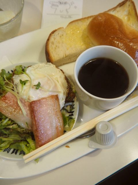 同店ではモーニングセットが3種類あるが、他はおにぎりセットと朝がゆセットで、これが最もモーニングらしいと感じたので、選んだ。