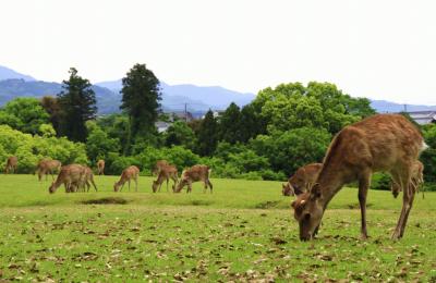 春日大社や奈良公園の鹿を見てきました。また、遅い時間に行ったので、東大寺に入れませんでしたが、外から見てきました。