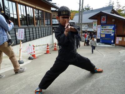 戸隠神社奥社を2時間かけて参拝した後は 子ども達のお楽しみ「チビッ子忍者村」へ戸隠神社中社の前にある道をぐるっとまわり 奥に進むとチビッ子忍者村です。運良く、JAFの会...