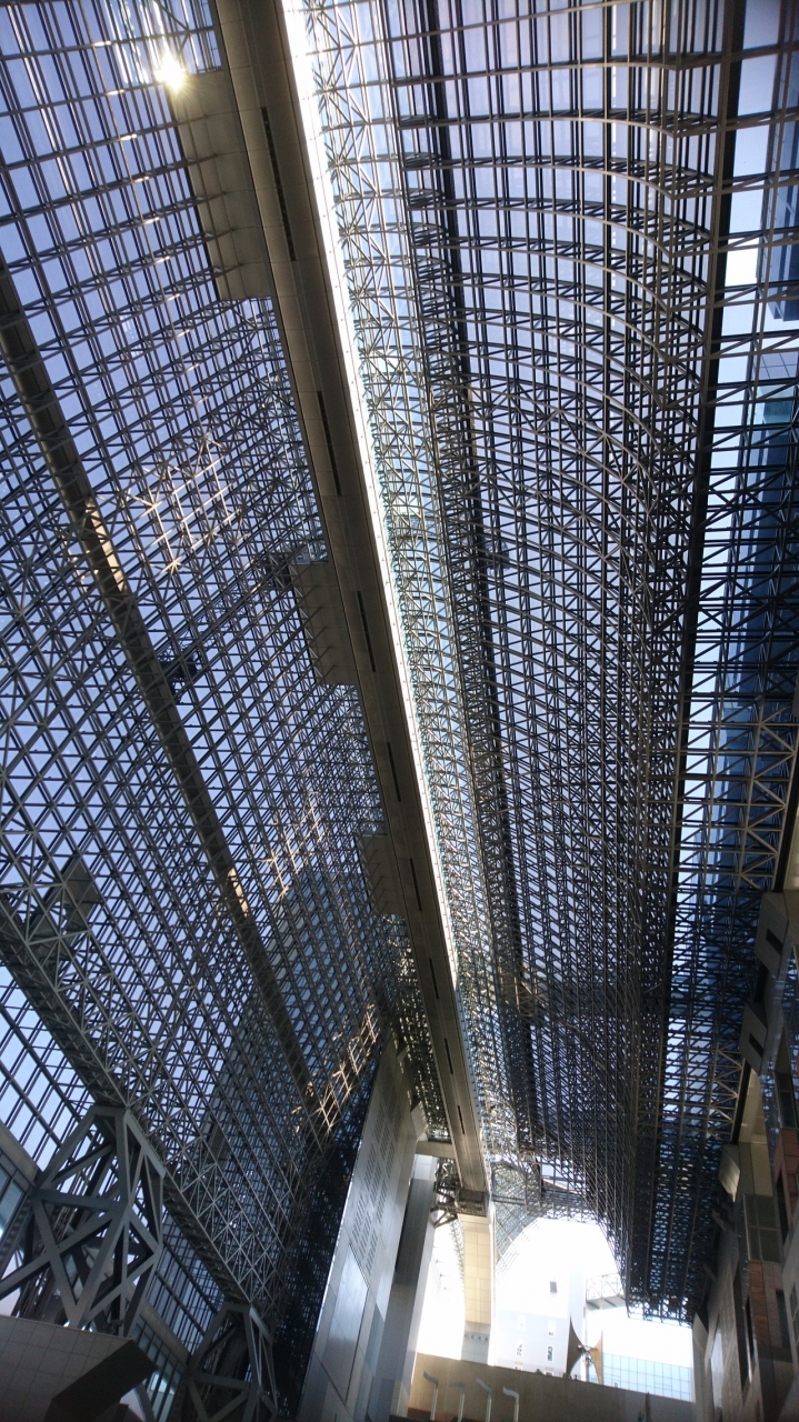 京都駅構内の吹き抜けは素晴らしい空間で解放感があり何といっても外の光が入り込む空間がいいですね。