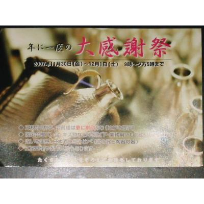 大阪錫器の年に1度の大感謝祭があると、今日ハガキが届いたので、正規品が2割引からキズ物など半額以下など。