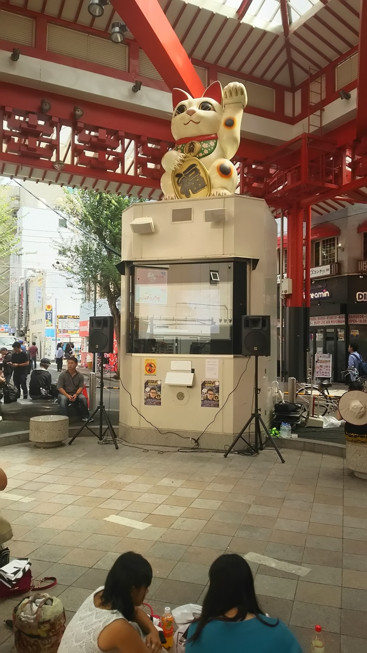 大須商店街の南東側に位置するまねき猫。遠くからでも目立つので待ち合わせ場所に最適です。もちろん屋根があるので天候に左右されません。イベントや路上ライブ、週末には大道芸も行われます。こういった象徴的存在はなぜか気分を落ち着かせてくれます。