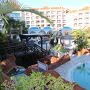 シーズンオフに行ったため、プール等での人の賑わいを感じることができませんでした。施設は部屋数も多く、プールも何カ所かあり、スパもあり広い施設です。コンドミニアムタイプの2ベッドルームに3泊しました。室内はブルーの落ち着いた色調でまとめられ、冷蔵庫、電子レンジ、食器類、食洗器、乾燥機付き洗濯機も部屋にあり、ゆったりと、快適に過ごせました。アニメティや洗剤もあります。4階部屋の部屋でしたが、部屋の前は庭園とその奥にゴルフ場があり、自然の緑を感じることができました。ベランダにイスとテーブルもあり、季節が合えば外の風を感じながら、食事もとれます。コンシュルジュデスクはありませんでしたが、チェックインの受付で、バスツアーの紹介や申し込み等もできます。