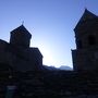 カズベキ村で一泊。翌日早朝ホテルから手配してもらっていた車ででかけました。まあ、美しかったです。次第に開けてゆく空と差し込む太陽の光。万年雪をかぶったカズベキ山を借景に立つその姿は得も言われぬ光景せした。教会内部は質素な小さなものです。