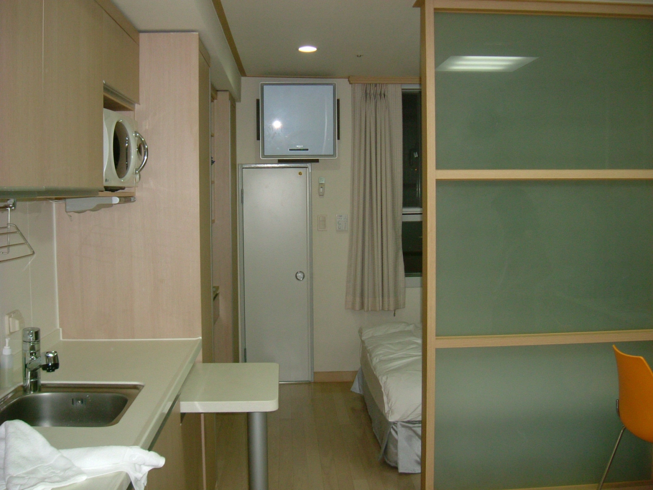 地下鉄の駅「東大門運動場」の近く、ソウルのどこに行くのも便利が良かったです。ダブルベットの部屋では、キッチン、電子レンジ、冷蔵庫、高速ネットワーク完備。北側の部屋でしたが、そこそこ広く、部屋も明るく、大変快適でした。シャワーしかないのは、韓国のリーズナブルな宿では、仕様が無いところでしょう。