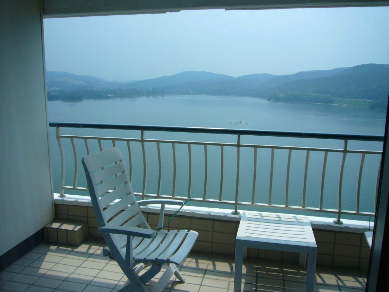 部屋は11階の湖側でした。ベランダには椅子とテーブルがあるので、綺麗な景色を見ながらビールを飲んだりしました。