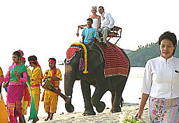 ビーチを眺めていたら象に乗ったカップルが現れ、突如結婚式が始まった。このホテルではビーチウエディングがあるらしい。
