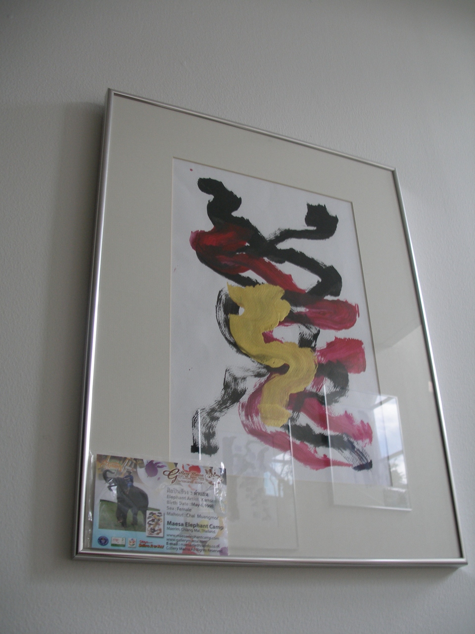 凄い腕前・・象の書いた絵が飾られているのはメーピンホテルのロビーから2階へ上がる途中にあります。中々見ごたえがあるこの絵を描いた象・・それは凄い力作です。