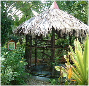 遠ざかると「ハロー!」と言うオウムがいます。庭はちいさいですが 手入れは行き届いていました。