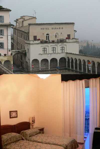 部屋はそれほど広くなく、内装は豪華ですがちょっと古さを感じます。ホテルは高台にあり、部屋の窓からはウンブリア平原を広く見渡すことができました。