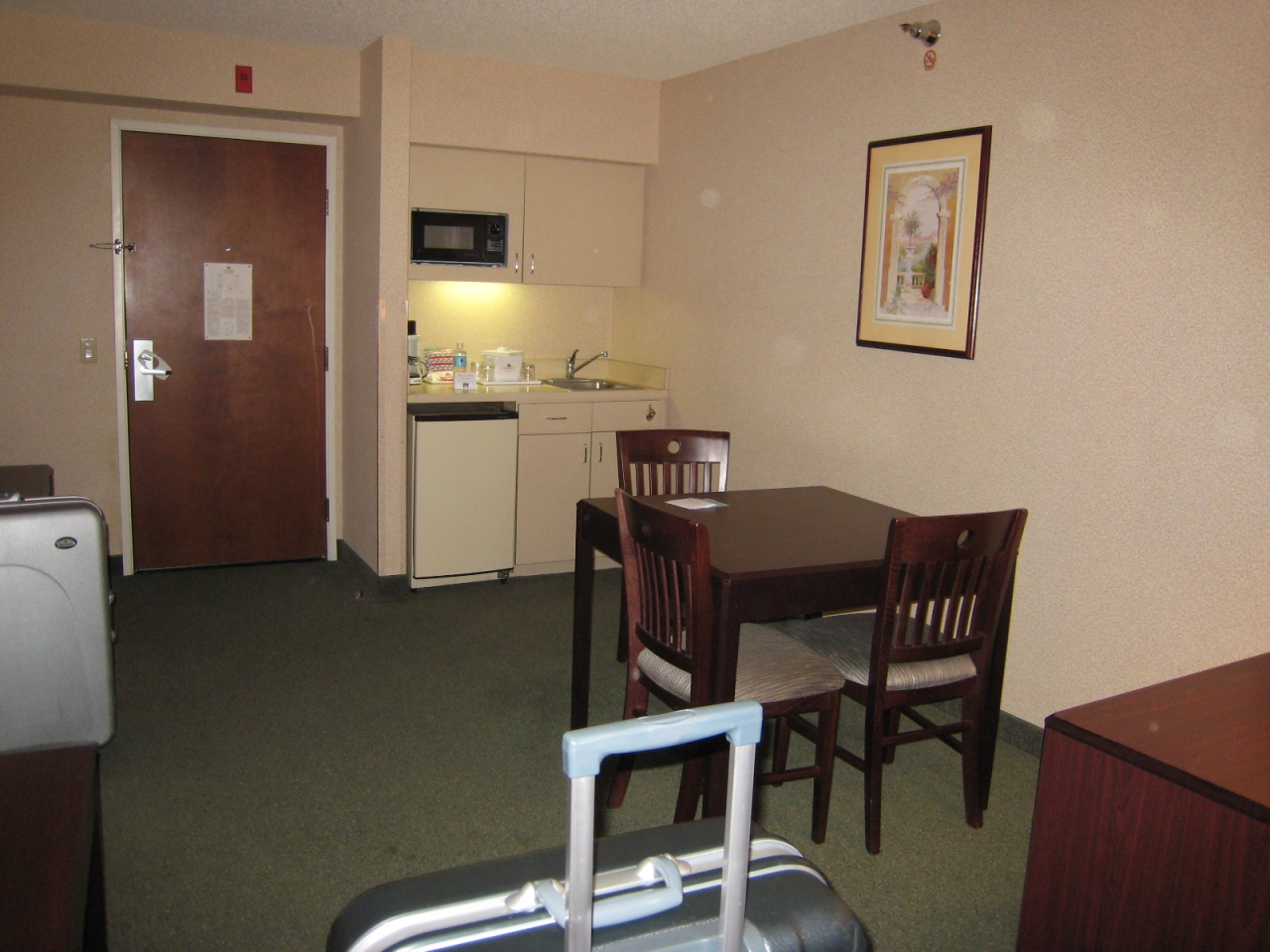 電子レンジ、冷蔵庫付の条件でここにしました。ただ冷蔵庫はちっちゃくて製氷器はあるけど、アイスクリームは溶けてくる、だいいちアメリカで売ってるようなアイスクリームはつぶさないと入んない!