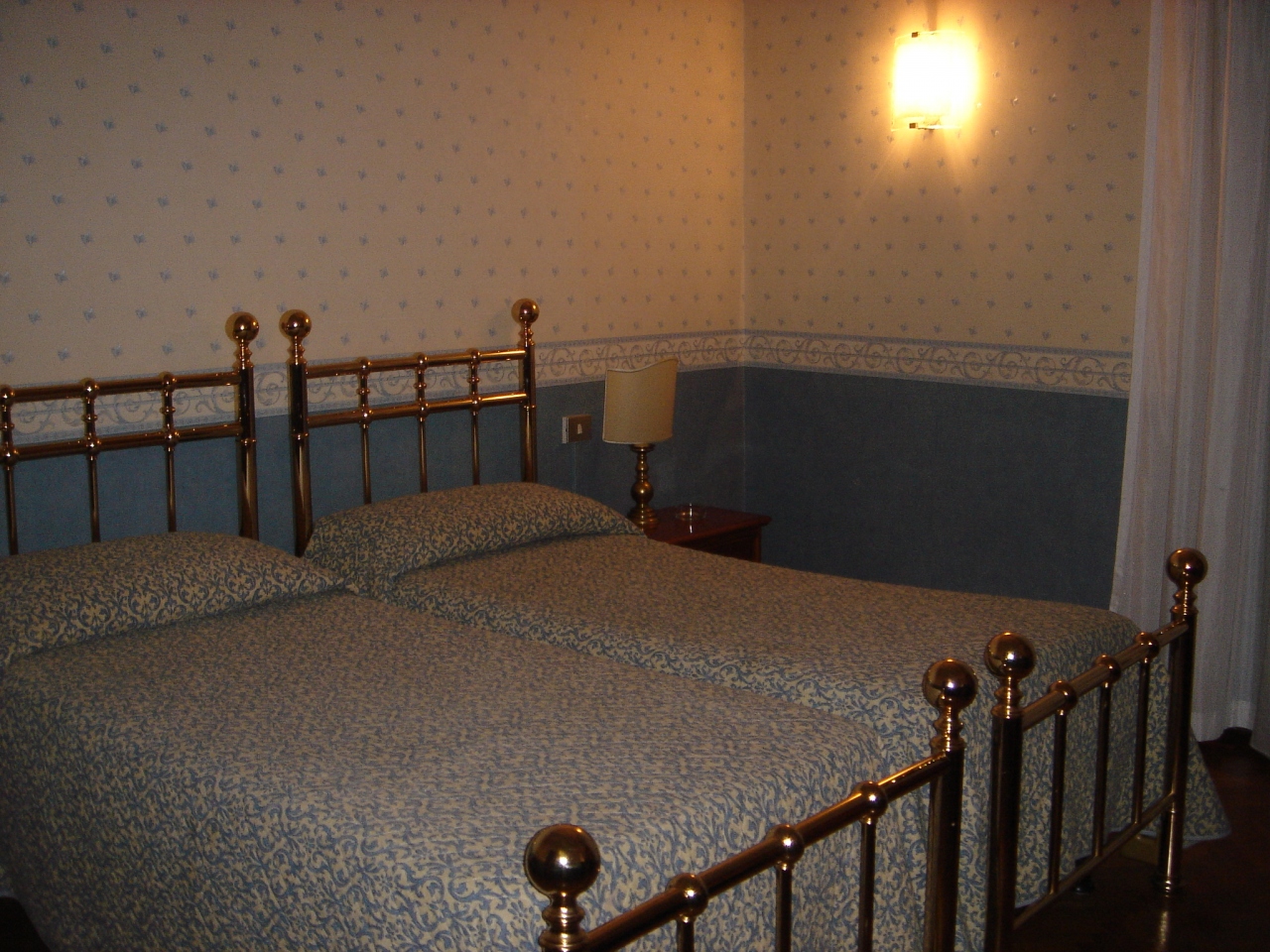 部屋は青を基調としていてとってもかわいらしいのですが、部屋もベッドも狭く、バスルームはなんだか変なにおいがこもっていました。ミニバーもなかったです。3つ星だから贅沢は言えませんね。