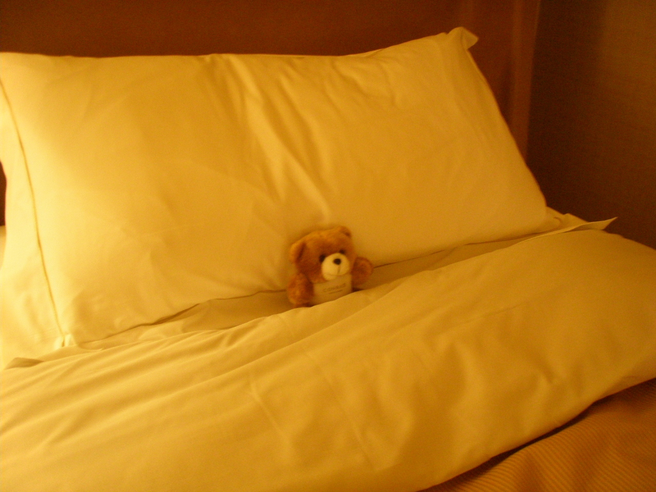 初日、夜部屋に戻るとベッドにクマのぬいぐるみ