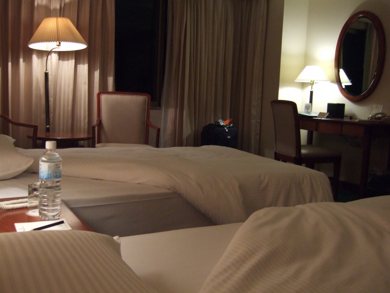 部屋は広くて清潔です。浴衣(パジャマ)がおいてありました。ミニバーも整っていて、ミネラルウォーターが無料で提供されています。