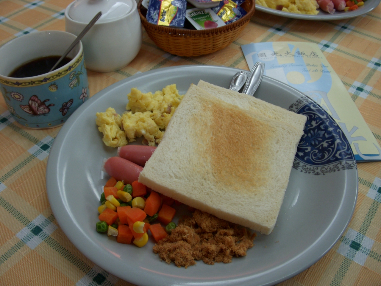朝食付きですが、トーストとインスタントコーヒーとおかずが少し、期待しないでください。(写真)