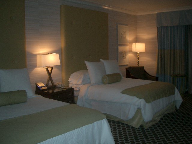 Caesars Palace は The Strip のほぼ中心にある典型的なbig hotel です。Casino の奥にフロントがあり、エレベータに行き着くまでも casino を通らなくてはなりません。レストランに行くのも casino を通り、ショーの入口も casino にあります。要するに、casino でお金を落してくれ、というホテルです。ベッドはアメリカでは並で驚きはありませんが、bathroom が広いのには驚きました。valet parking は引き取りに時間がかかるし、self parking lot ははるか彼方。要するに、ここに泊まるには、金力も体力も要るということです。