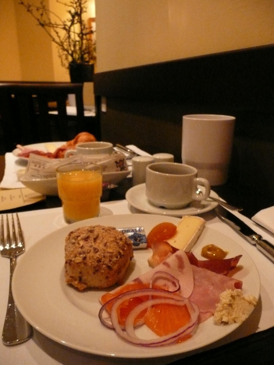 駅から5分のところにあり大変便利です。フロントの対応も丁寧、客室はまあまあ広く、清潔でベッドの寝心地も良かったです。朝食も4つ星ですから生のフルーツや暖かい卵、ベーコンなどがつきほっとできました。カペル橋にも近く値段も安いので、豪華さを求めない人には利用価値大のお勧めホテルです。(客室に向かう通路は倉庫のような感じで味気ないですが、部屋に入ってしまえば気になりません。)写真は朝食です。