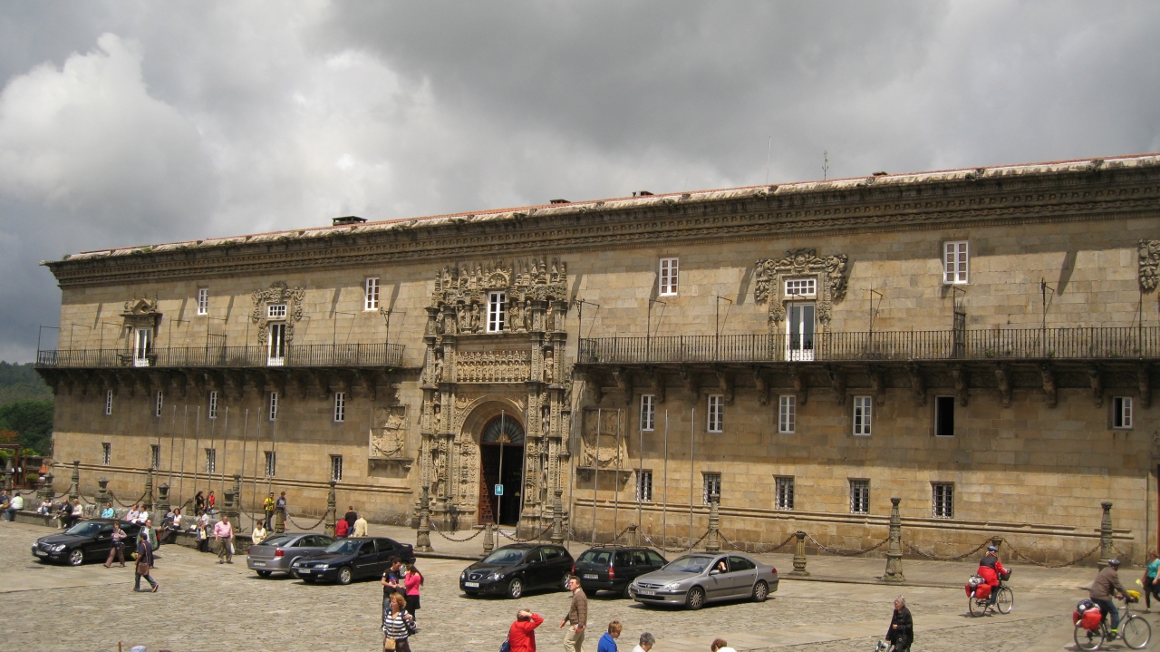 パラドール・レイエス・カトリコスは、カトリック両王が巡礼者のために建てた歴史ある建物で、かつて病院や宿泊施設として使われていました。部屋、中庭、廊下なども歴史を感じさせます。バスルームがとてもきれいでした。オブラドイロ広場に面しており、カテドラルの近くなので便利です。朝食も良かったです(ただし、ウベダのパラドールのほうがもっと良いです。)。またチェックアウト時には、パラドールの1日無料宿泊券をもらいました。