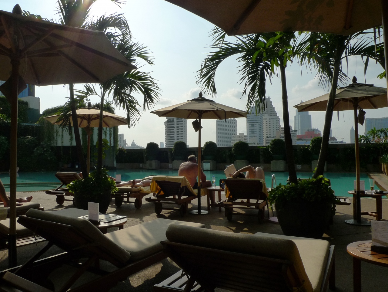 プールはシェラトンより随分大きい。プールの向うにビル群が見えてちょっとカッコイイ。
