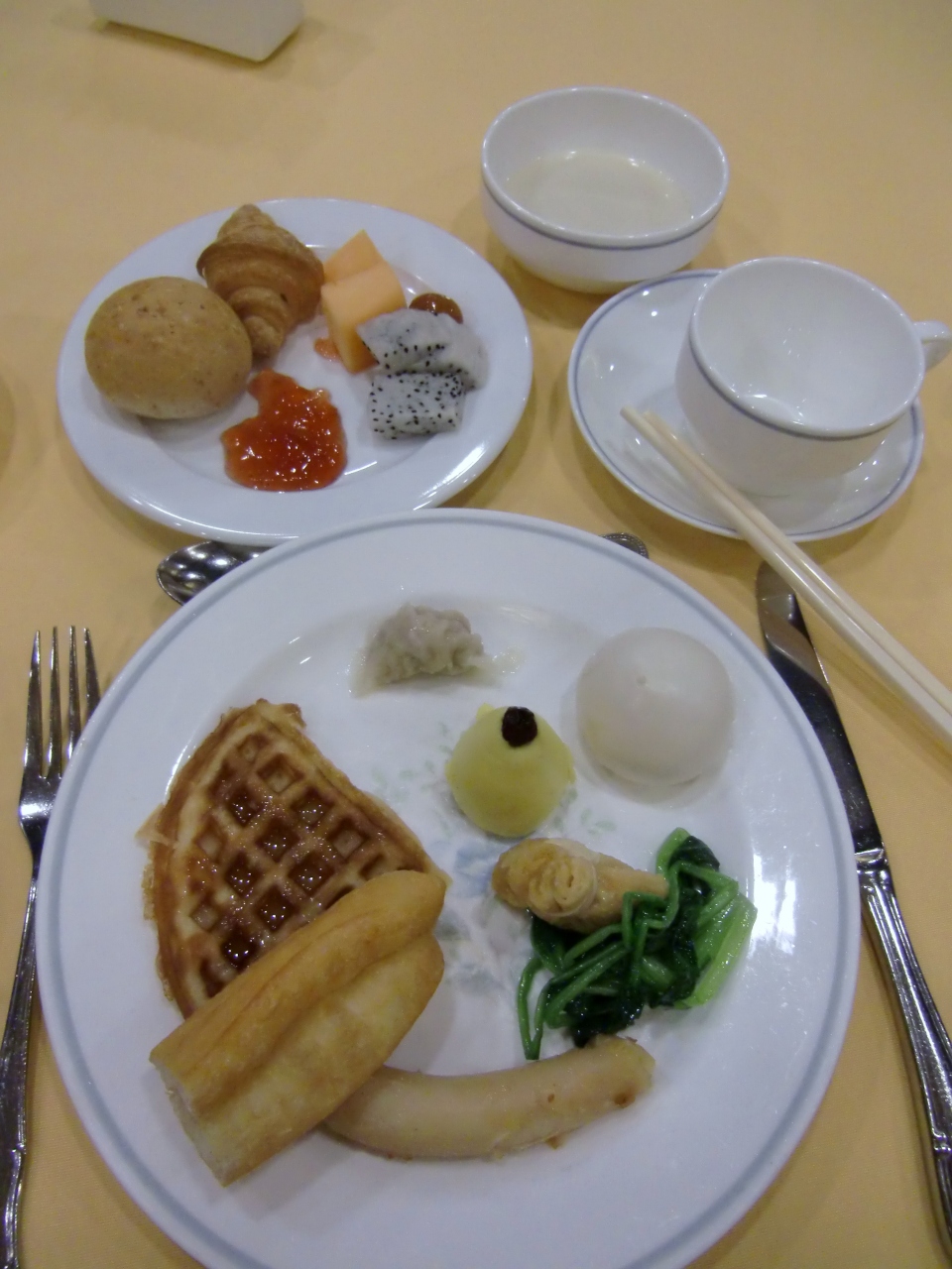 朝食→日本人ツアー客はレストランではない朝食会場での食事となります。入り口付近でオムレツを作ってくれるようですが、いつから開始しているのか分かりませんでした。(欲しい時にはやっていなく、帰る時に作っていたり、いなかったり…)一度だけ1階のレストランでの朝食でしたが、朝食会場より種類豊富で豪華でした(これは5つ星ホテルって感じでした)