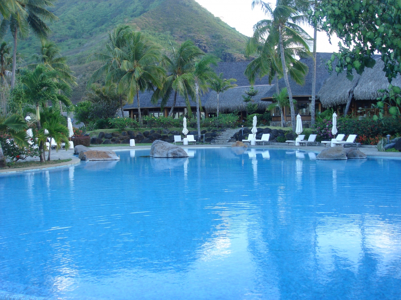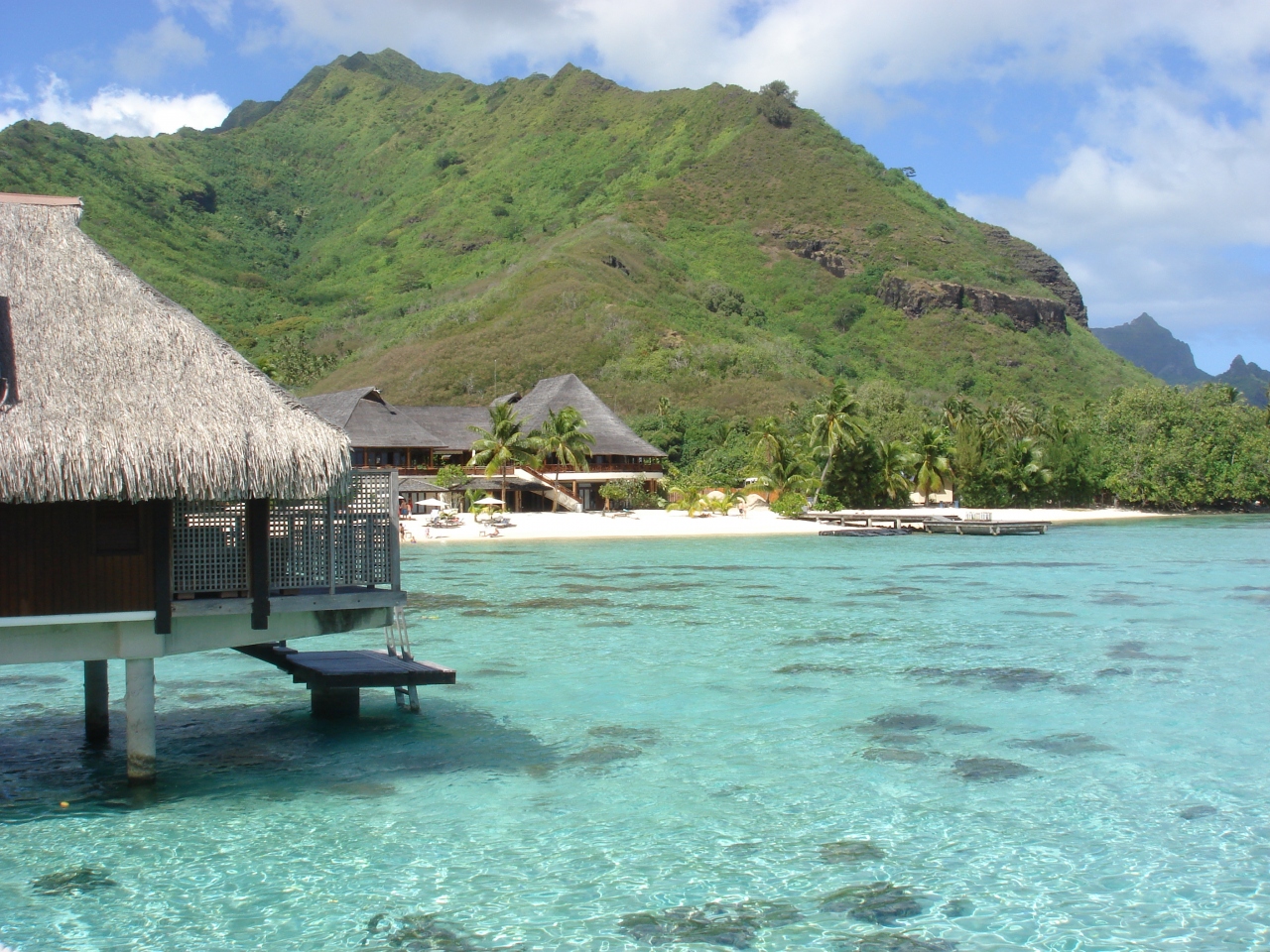 モーレア島には他にも多数リゾートホテルがありますが、ヒルトンモレーアは海の透明度は抜群によいです。水上コテージに泊まると、テラスから泳ぐ魚達が見えます。またシュノ―ケリングでパンを魚にあげていると、気がつくと周りが魚だらけになるほどです。大きな魚がパン目当てに出没することがあり、多少怖い経験もしましたが、シュノ―ケリング目当て等の人はヒルトンモーレアをお勧めします。