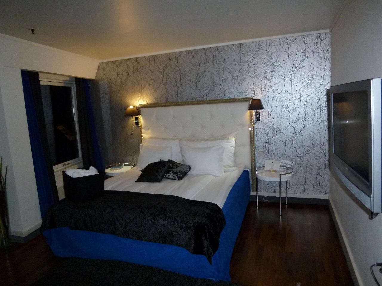 トロンハイムの中心にあるホテル。建物は古いが内装は近代的なデザインホテルになっている。フロントも客室も音楽関係の絵や楽器、写真などが飾ってある。私の泊まった部屋はCD、DVDプレーヤーもあり、何と譜面台まであった。無料無線ランも完備。全体的に青を基調にした部屋で熊のぬいぐるみも椅子に座っていた。朝食はかなり豪華で港がある街らしく海産物が多く揃っている。私たちは夜9時チェックインの朝10時チェックアウトだったが、従業員も丁寧に接してくれてもっとゆっくり泊まる気持ちにさせくれるホテルでした。