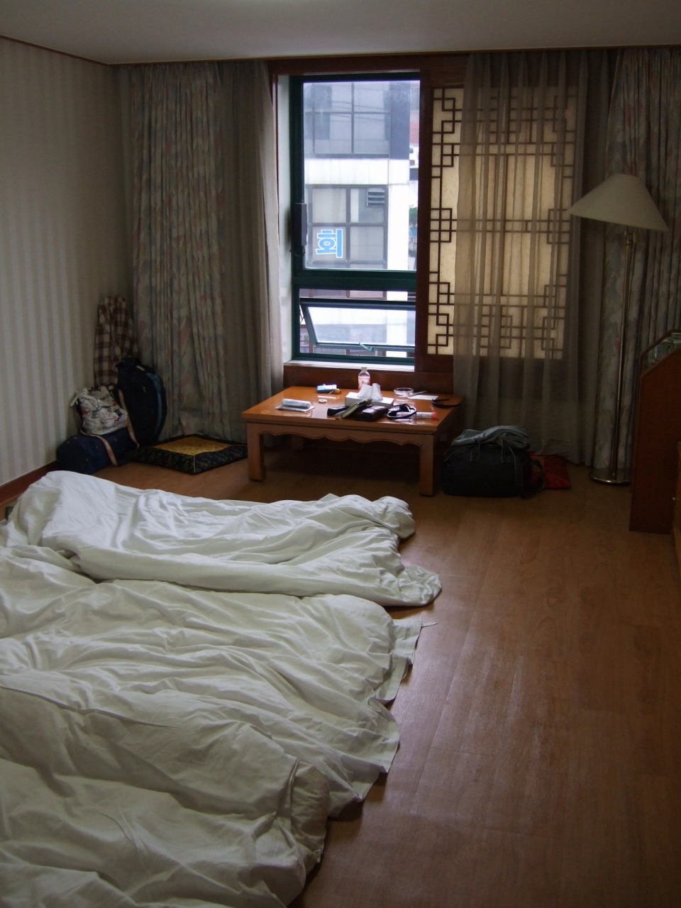 オンドル部屋(基本2名)にエキストラベット(布団だが)を追加して使ったが、広さ的には全く問題ない。