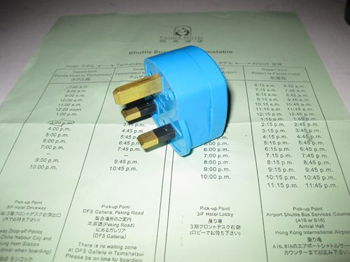 ○電源:写真の変換プラグ要、バスルームに丸い差し込みのシェーバーオンリーの差し込みが有るので充電ならそこで日本の差し込みが使える