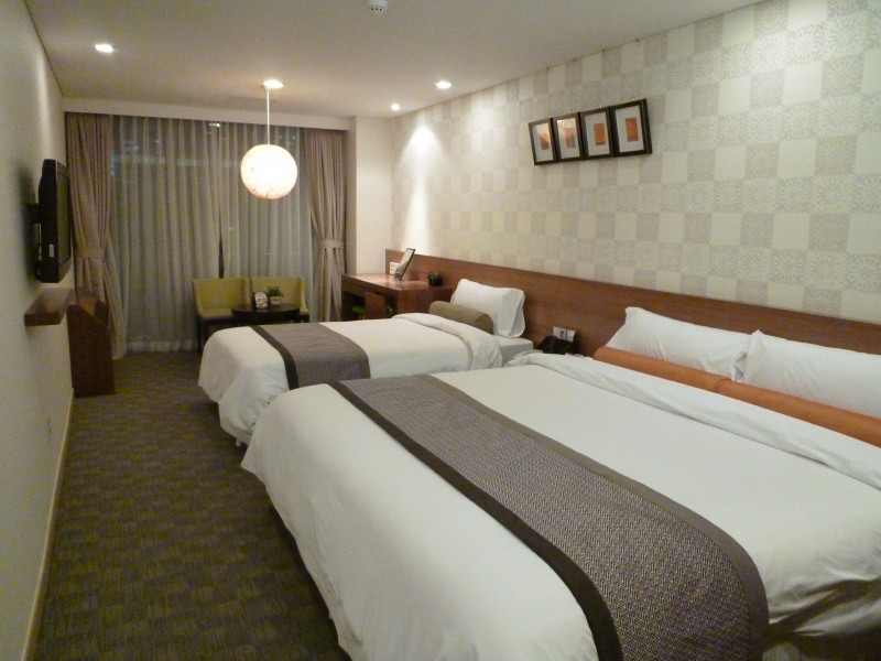 リニューアルされて部屋は清潔できれいでした。部屋も広くキングとダブルサイズのベッドが完備されていました。トリプル部屋もダブルサイズが3台ありました。バスルームも広くトイレもちゃんと流れました。金庫も暗証番号式ですし、冷蔵庫にはペット水がおかれていました。100Vのコンセントが完備されているので、携帯電話やデジカメの充電に重宝しました。ホテルは、日本語OKですし、スタッフのみなさん親切でした。ロケーションは、明洞から少し離れていますが、ホテルの無料シャトルバスを利用したので問題ありませんでした。ホテルの周辺は、印刷屋街でちょっと寂しいところでしたが、夜は静かでよかったと思います。地下鉄の駅にも近いので便利です。周辺には、コンビニが沢山ありましたが、ホテル1Fのコンビニが一番品数が豊富でした。缶マッコリが1000Wで売ってたので飲みましたが、結構美味しかった。また泊まってもいいと思うホテルでした。