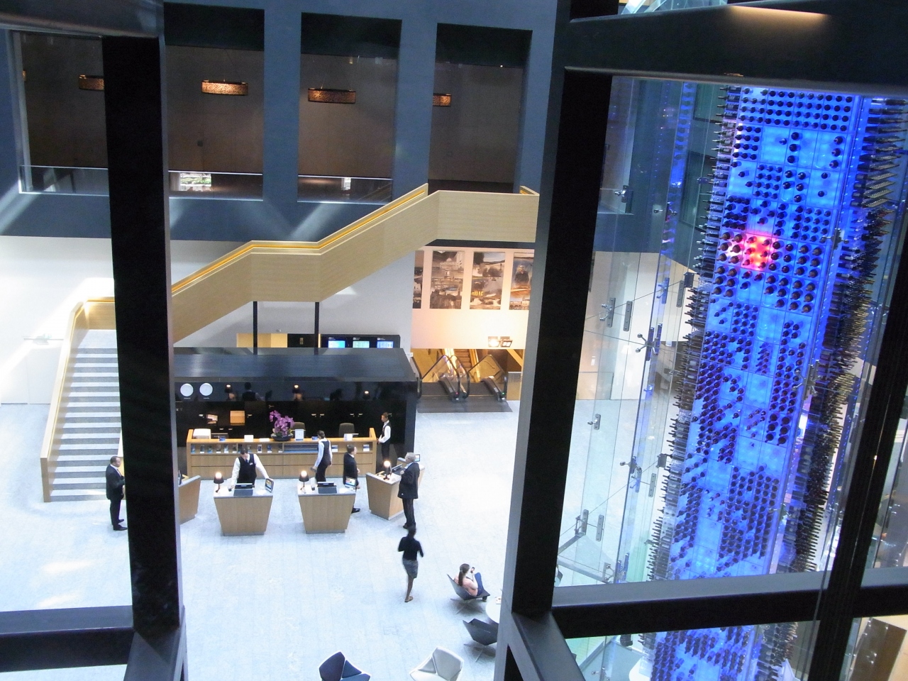 1階のバーには大きなワインのタワーがあり、期間限定かもしれませんが、女の人がタワーの中に入って、中国雑気団みたいな感じでワインボトルを取ってました(*^。^*)