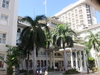 ハワイの街並の中で、一際目立つ白いホテルです。