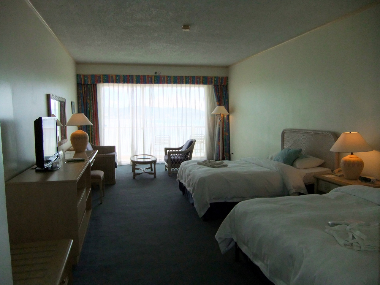 ハガニア湾を一望できるオーシャンビューのお部屋。ウォーターパークもビーチも敷地内なので立地、利便性抜群。小さなお子さん連れでも気兼ねなく楽しめるホテルです。コネクティングルームも48組あるそうなので、グループ旅行にも良さそう。でも、ホテルライフを優先して考える方には正直お薦めしません。