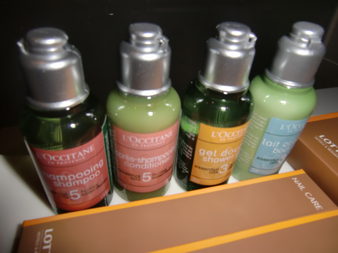 お部屋の形態は一応 リクエストしていましたが ダブルサイズのベットと今までの普通のアメニティーと違い 「ロクシタン」が置かれていましたので 嬉しくて 感激しました。ただ 残念なことに 初めて バスタブがなかったのには驚きでしたが