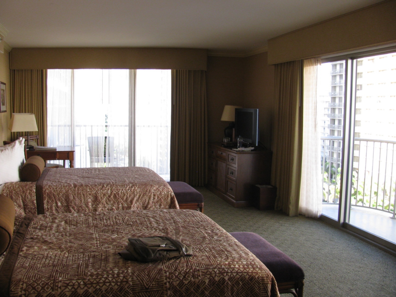 今回パーシャルオーシャンビューを予約しました、ホテルが用意してくれた部屋は海から一番はなれてはいますが12階のコーナーの部屋なのでかなり広くゆったり過ごせて快適です、2面にバルコニーがあってシティービューとオーシャンビューの両方が楽しめます、両方の窓を開放つと爽やかな風が部屋の中を吹き抜けて一日中エアコンはいりません。(窓を開けると自動的にエアコンは停止するようになっていました)