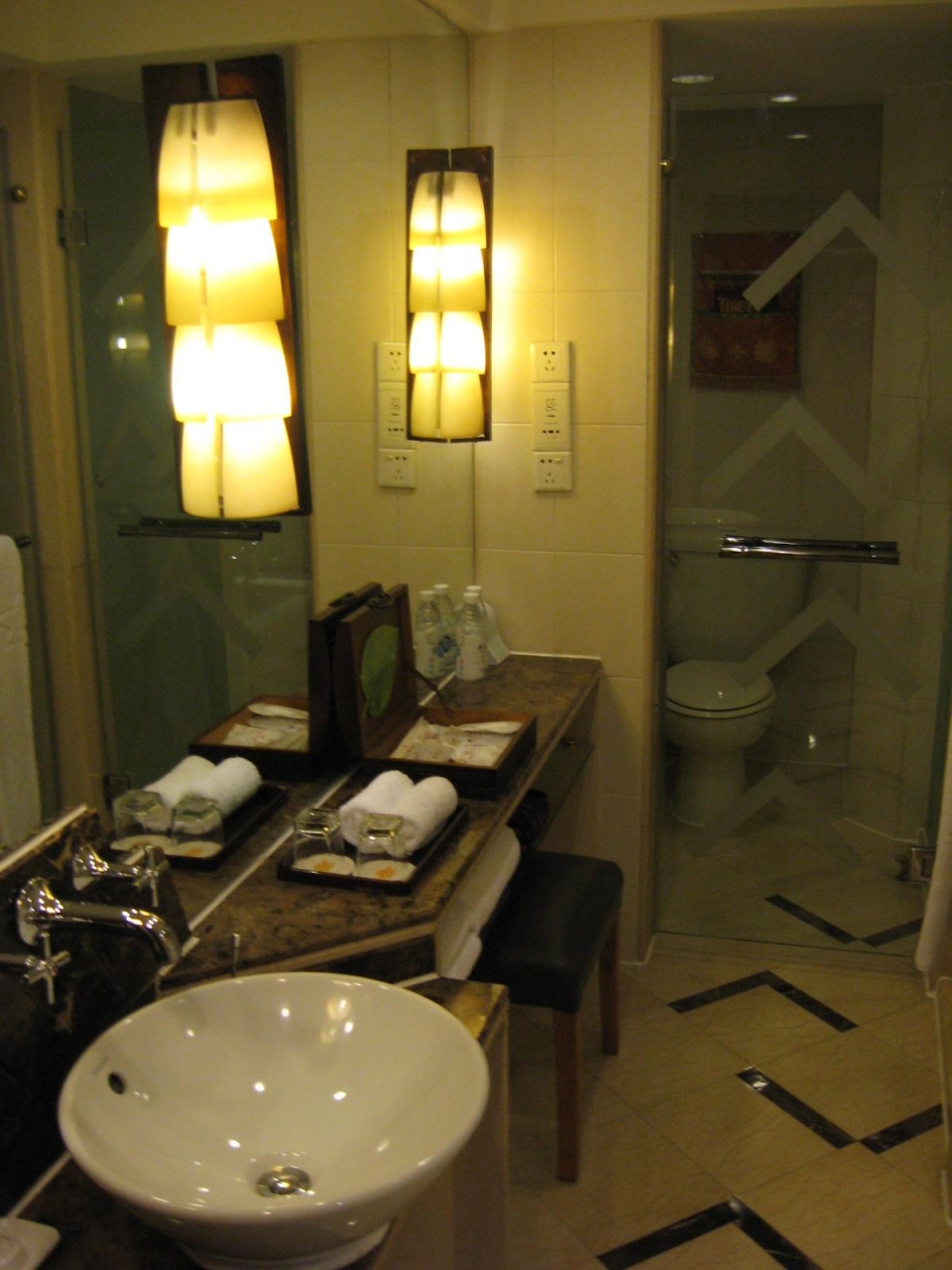 2年前にリニューアルされ、高級ホテルになりました。客室は広く清潔で、お風呂のお湯も問題ありません。バスタブ、シャワー室、トイレがガラス扉で分離されています!!アメニティーも十分です。客室内スリッパ(厚手で歩きやすい)、歯ブラシの色を変えている心づかいは、日本以外では初めてです!!!客室ミニバーのビールは15元(2011.8月現在)です。また、ルームサービス(24時間対応)のトマトビーフン(20元)、ワンタン(20元)もおすすめです。