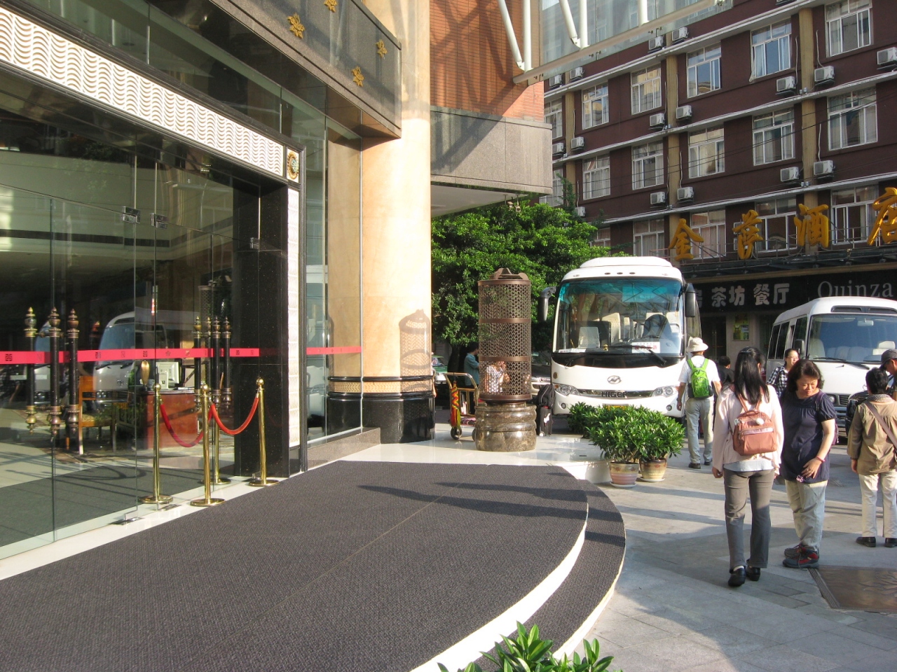 私たちは、天府広場で30分かけてもタクシーがつかまらず(雨だったからか)、地下鉄で帰りました。地下鉄の駅からも300m程でわかりやすい立地です。