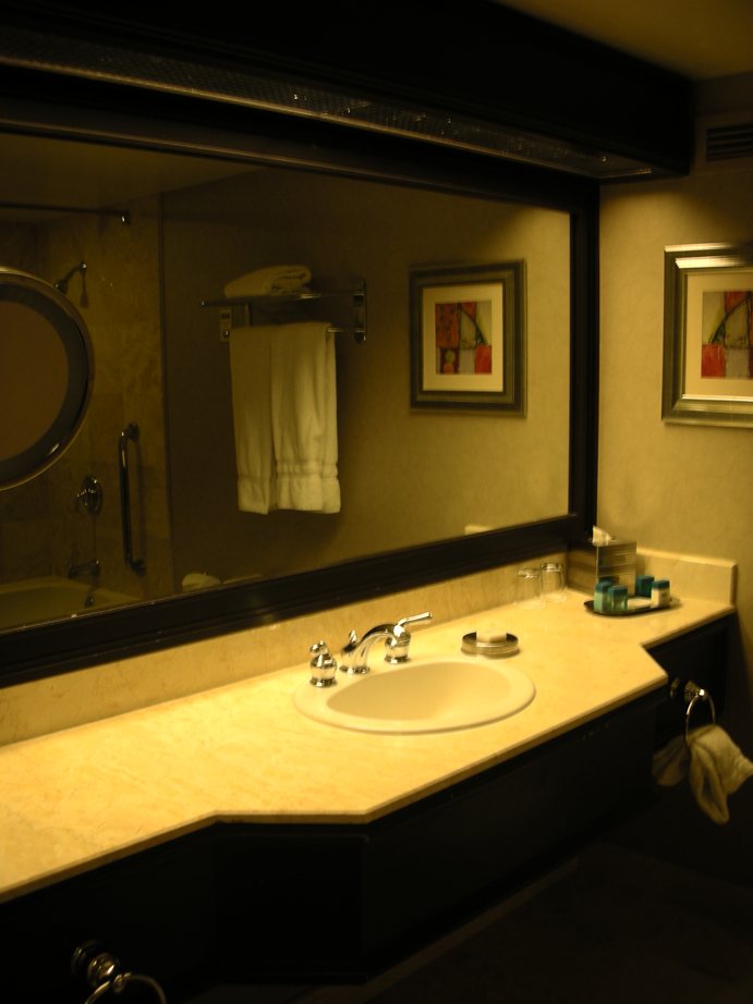 ベネチアンでオペラ座を見たくて、ベネチアンより安いTIを選びました。部屋は若干狭いですが、ダークブラウンが基調の全体的に落ち着いた部屋で、気持ちよく過ごせました。