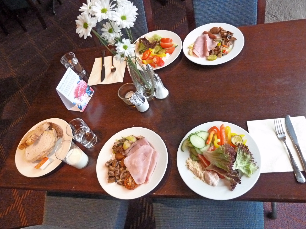 一泊ツイン28565円.アップルホテルズを通して(実際はミキツーリストロンドン),フィヨルドビューで申し込んだが,部屋はやっと横にブリッゲンが見える程度の景観.文句を言って変えてもらおうと思ったが,家人が疲れていて早く休みたいというのであきらめる.一人旅だったら絶対クレーム.部屋は古い四ツ星の典型的な部屋.食事は四ツ星の標準.ベルゲン港に面し,便利なところなのでまあこんなものか.仕方なく宿泊するホテルの部類.