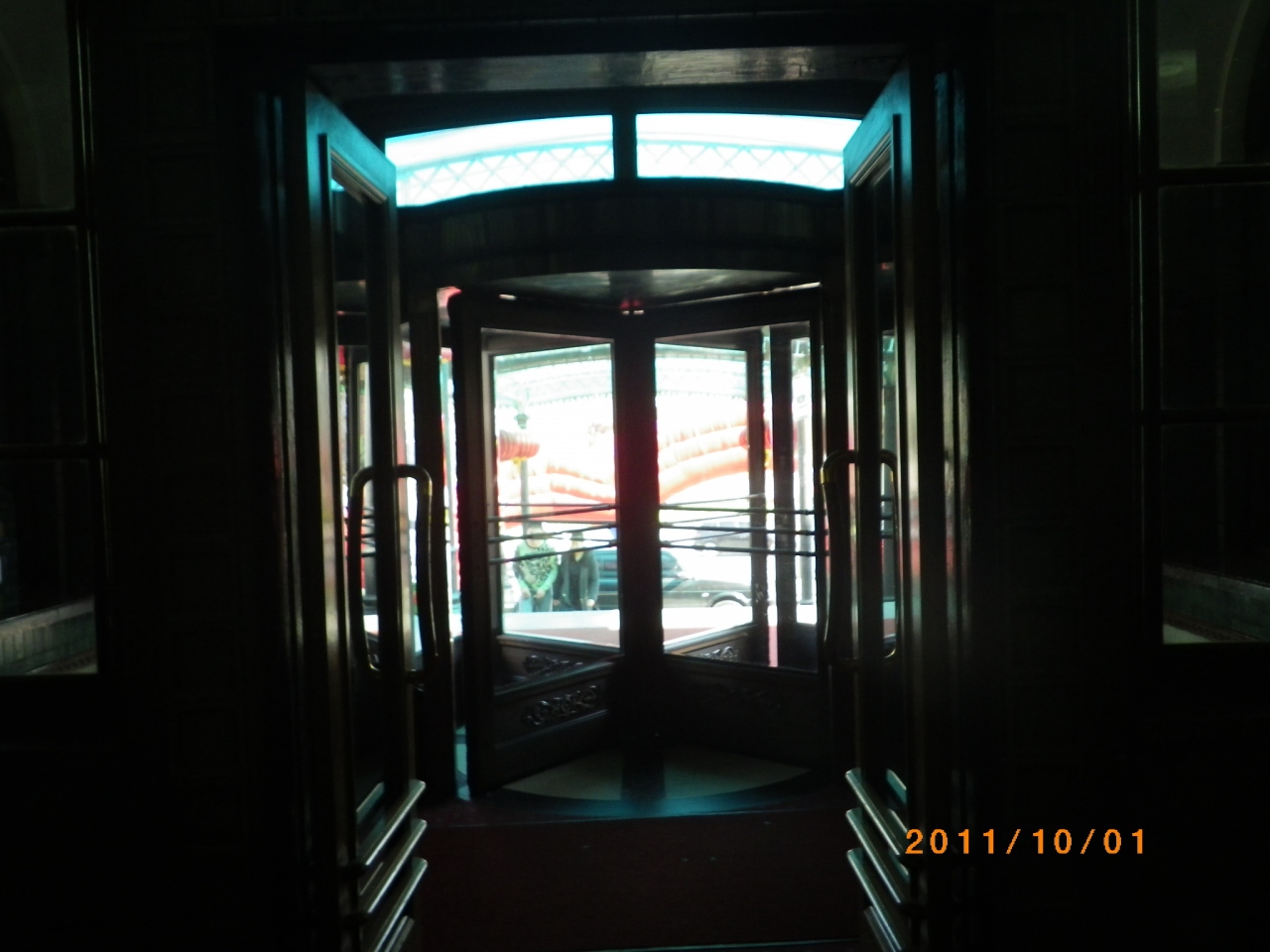 ホテル内のレストランや玄関の回転ドアなどはマホガニーウッド(ちがうかも)の黒光りした木で作られた重厚な質感が時代と格の高さを感じさせます。
