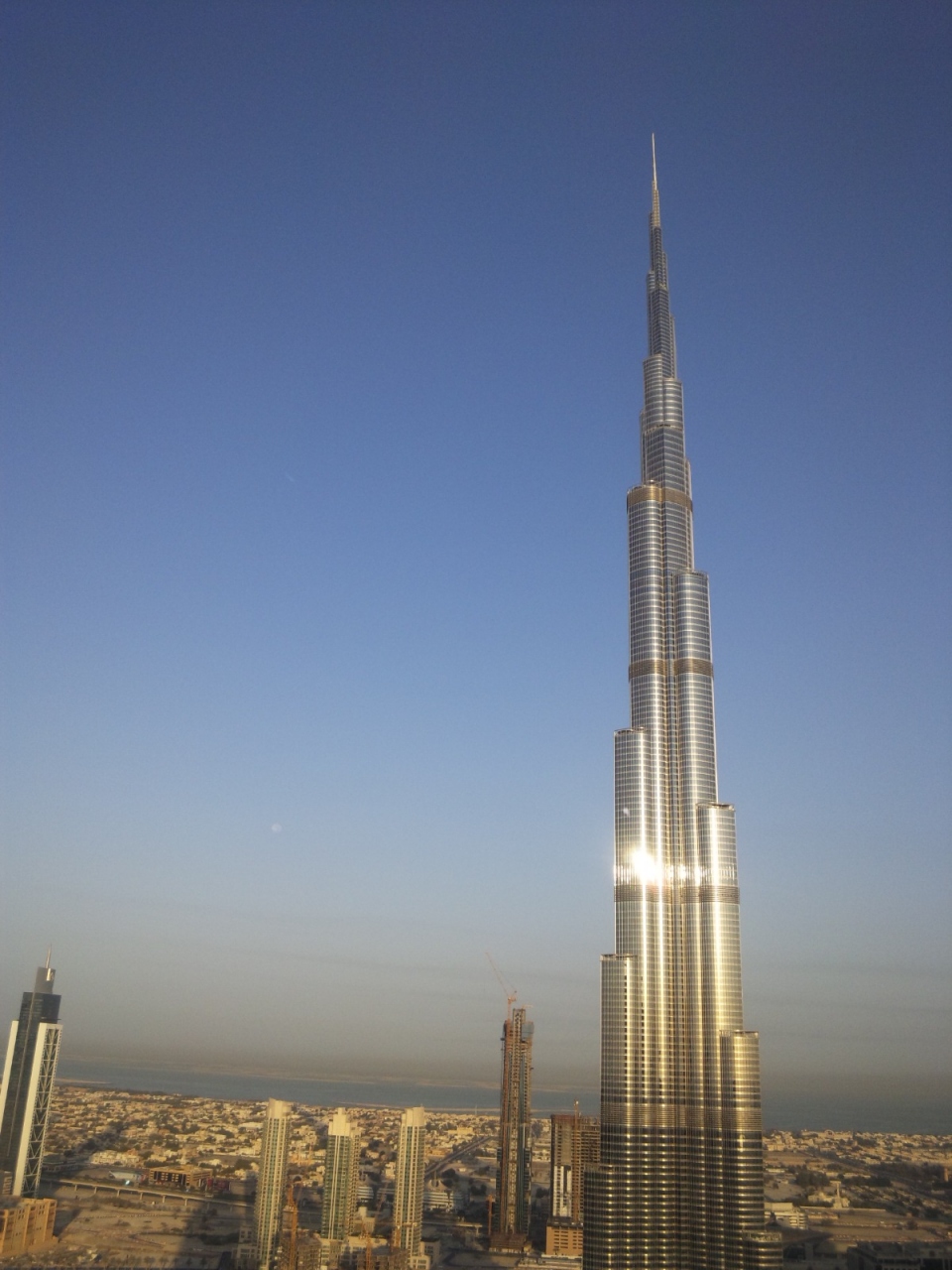 砂漠の暑い風を感じながら、目の前の世界一のタワーを眺める。まさに贅沢のひととき。
