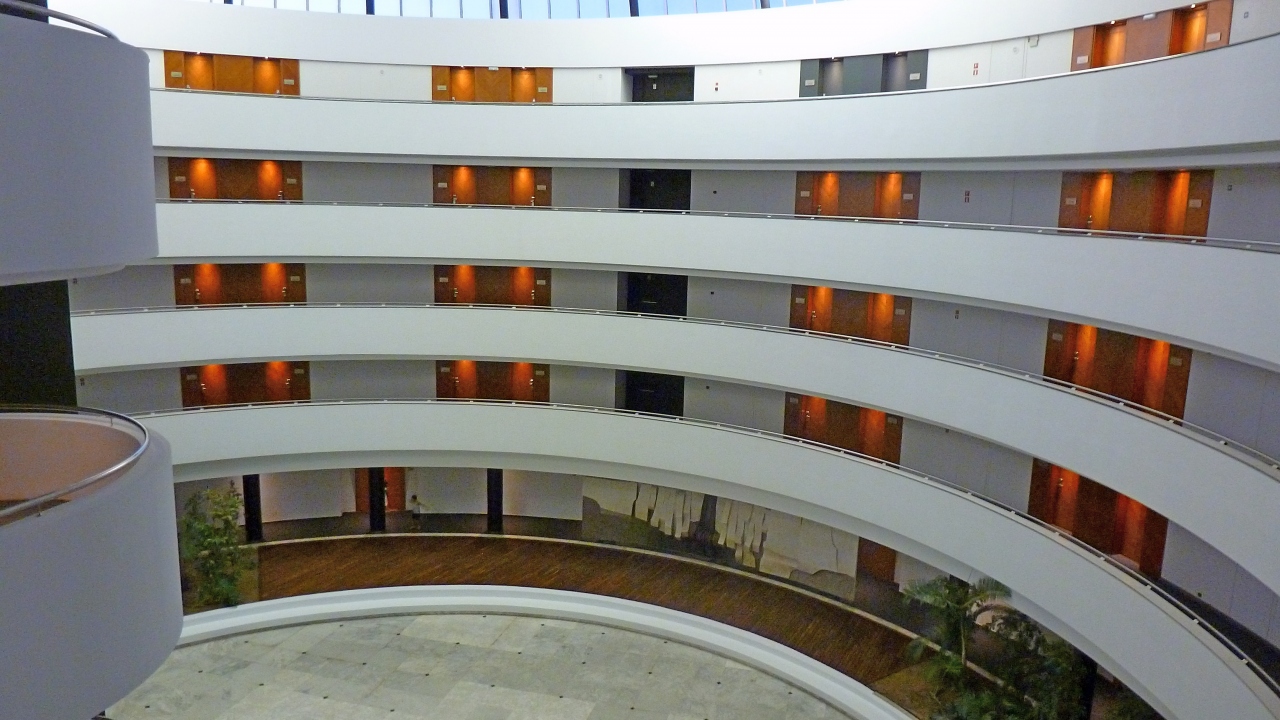 地下にある駐車場に入れたが,駐車料なんと一日15ユーロ.巨大な3つのビルの郊外のホテルだし,万博に使われたと聞いていたので,広大な駐車場があると思っていた.周りの道路には車がいっぱい停車,地下駐車場は半分程度しか入っていない.巨大なホテルなので,車で来ている人はたくさんいると思うが,ほとんどが野外駐車なのだろう.