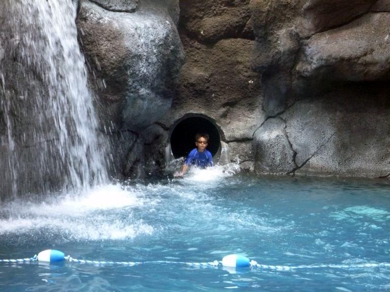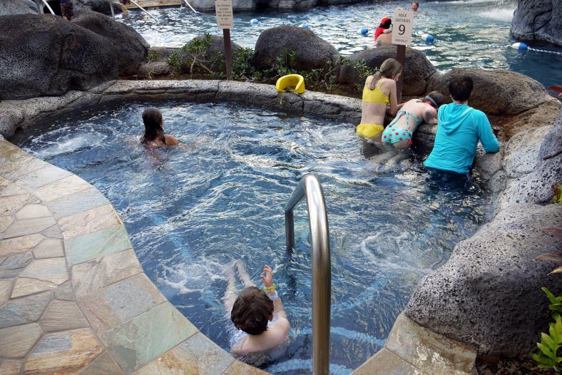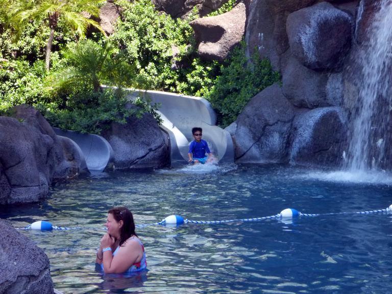 パラダイスプールはスウィミングを楽しむプールではなく、二つのスライダーを滑ったり、ジャグジーで寛ぐプールです。